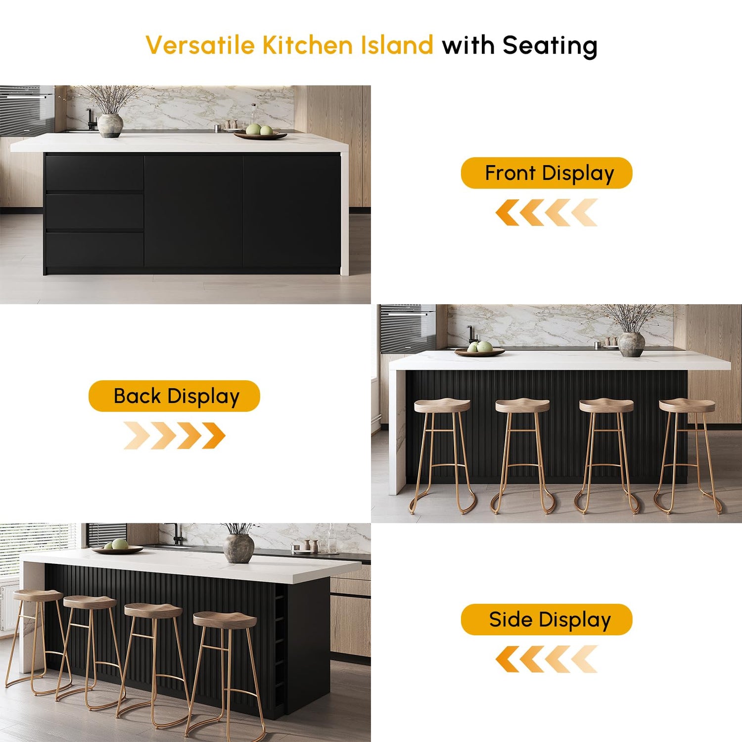 homary 72" Modern Kitchen Island with Storage & Seating White & Black Island Table for Kitchen with Drawers & Cabinet