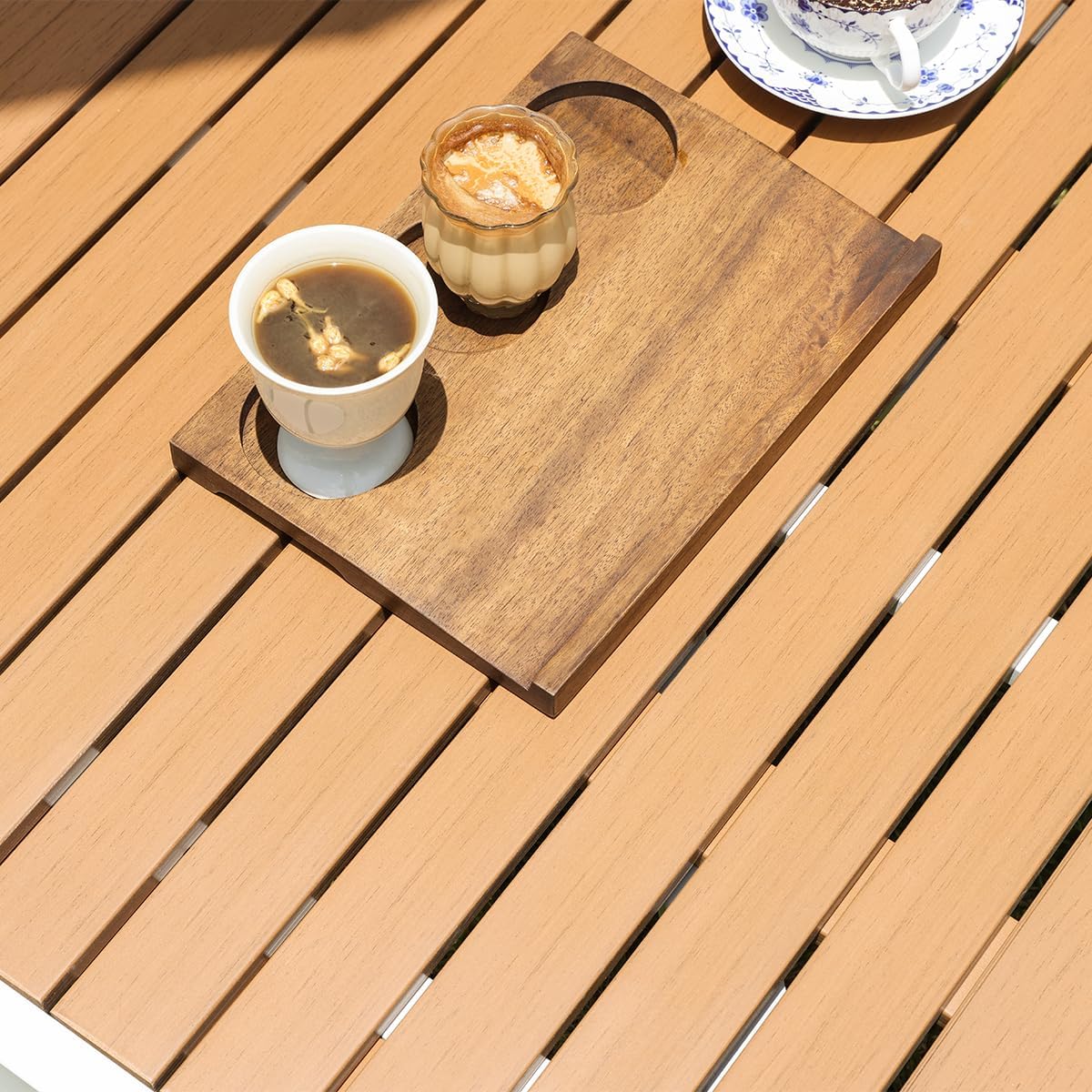 - OUTDOOR SOFA WITH COFFEE TABLE AND SIDE TABLES: This outdoor sofa set with coffee table comes with two solid wood coffee tables and a matching side table, providing practical space for snacks, drinks or decorative items. The solid wood table top adds organic charm and functionality to your modern garden seating set