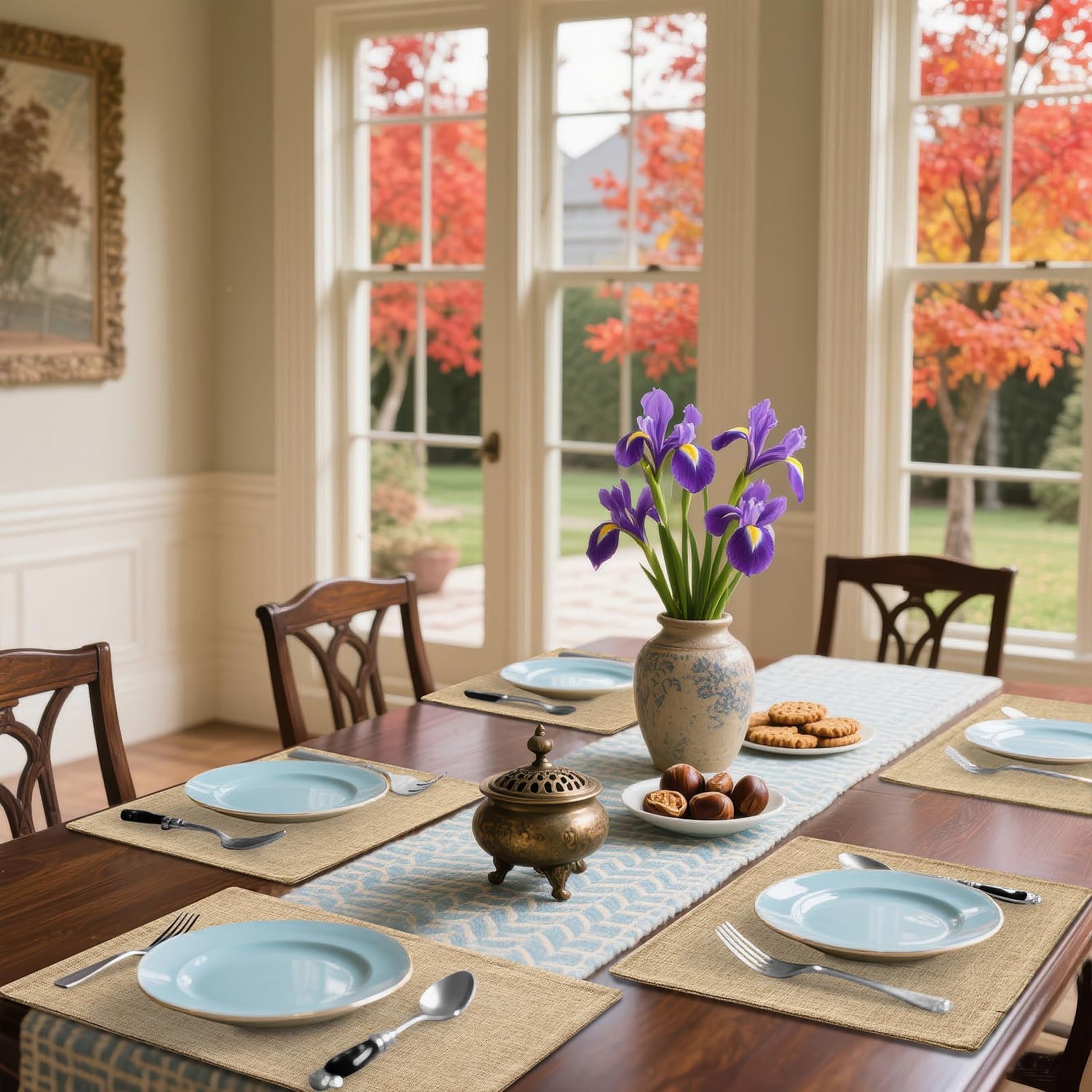 - √ MATERIALS: Our placemats are made of linen and cotton, durability and washable, liquid can go through placemats, anti-heat and anti-stain, protecting your table from all kinds of debris and stains