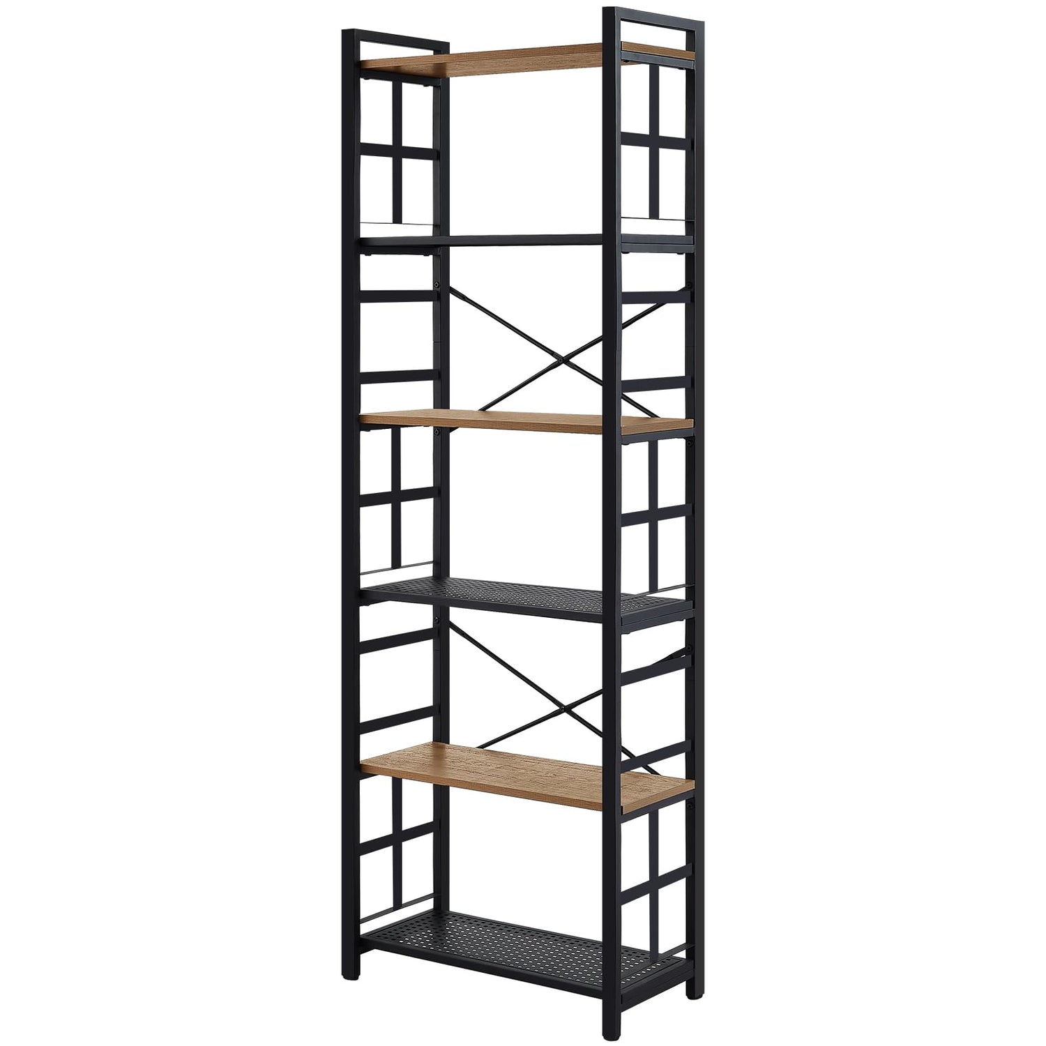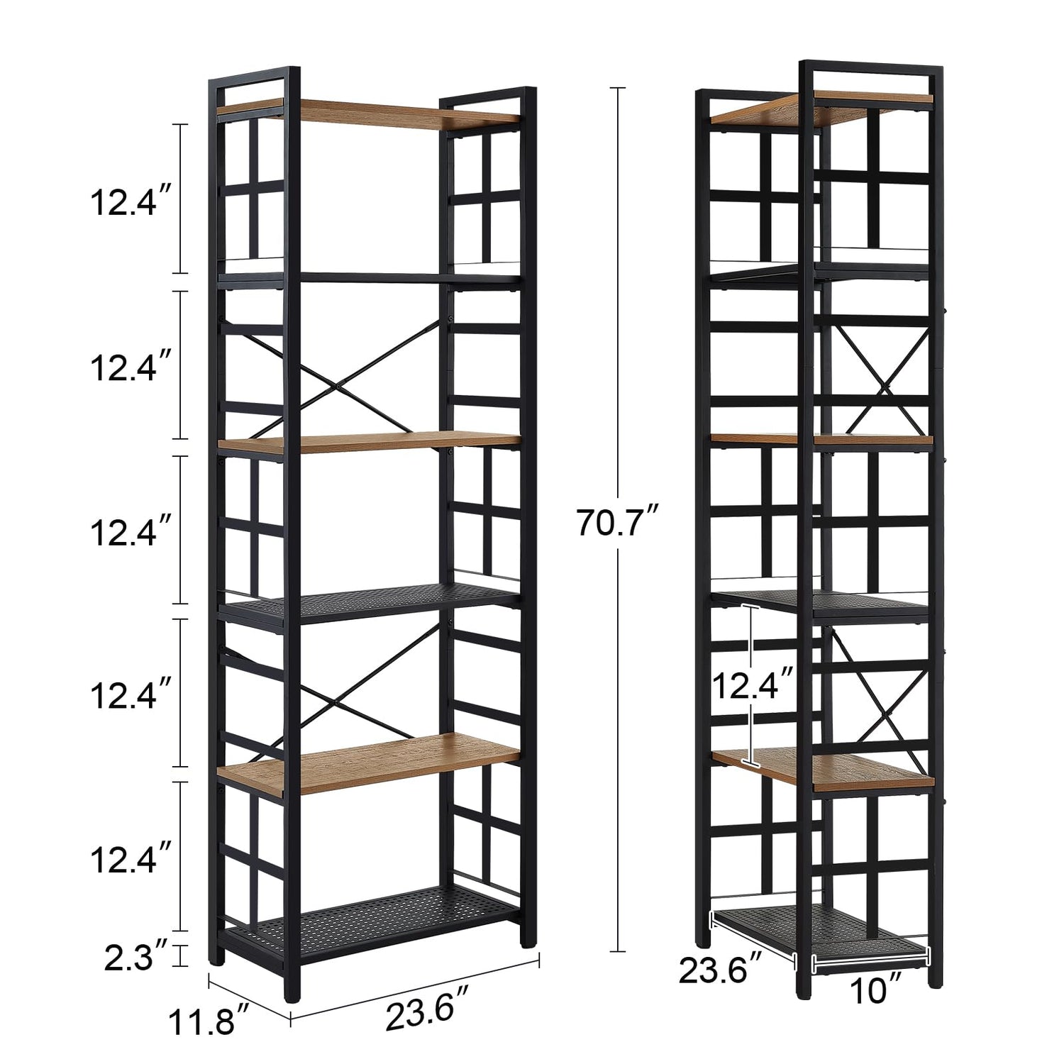 HOMBAZAAR 6-Tier Industrial Bookshelf with Metal Frame in Rustic Brown