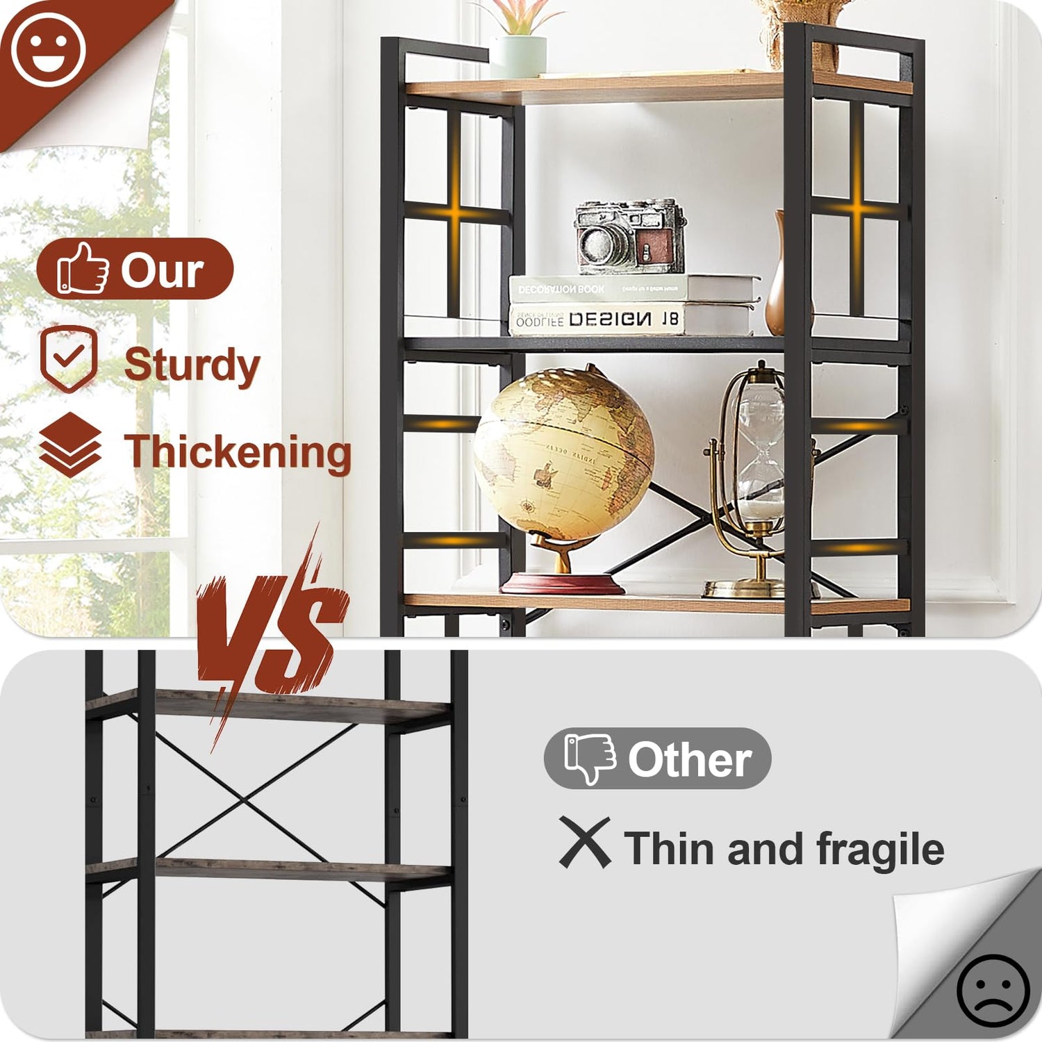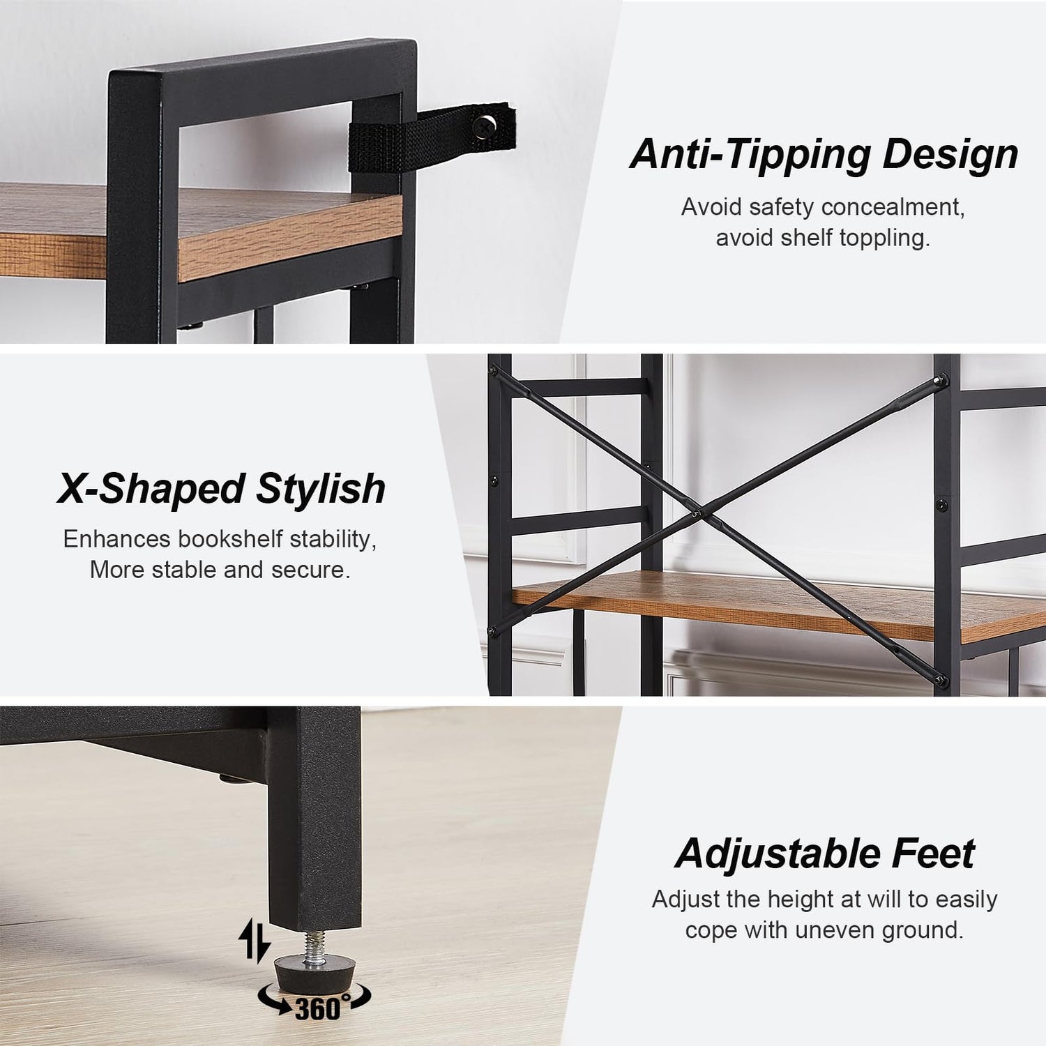 Crafted to endure, the HOMBAZAAR bookshelf features an innovative X-shaped back and a unique side structure that significantly boosts its stability. The rustic brown colour, paired with diverse textures, transforms it into an eye-catching focal point that elevates your interior decor.