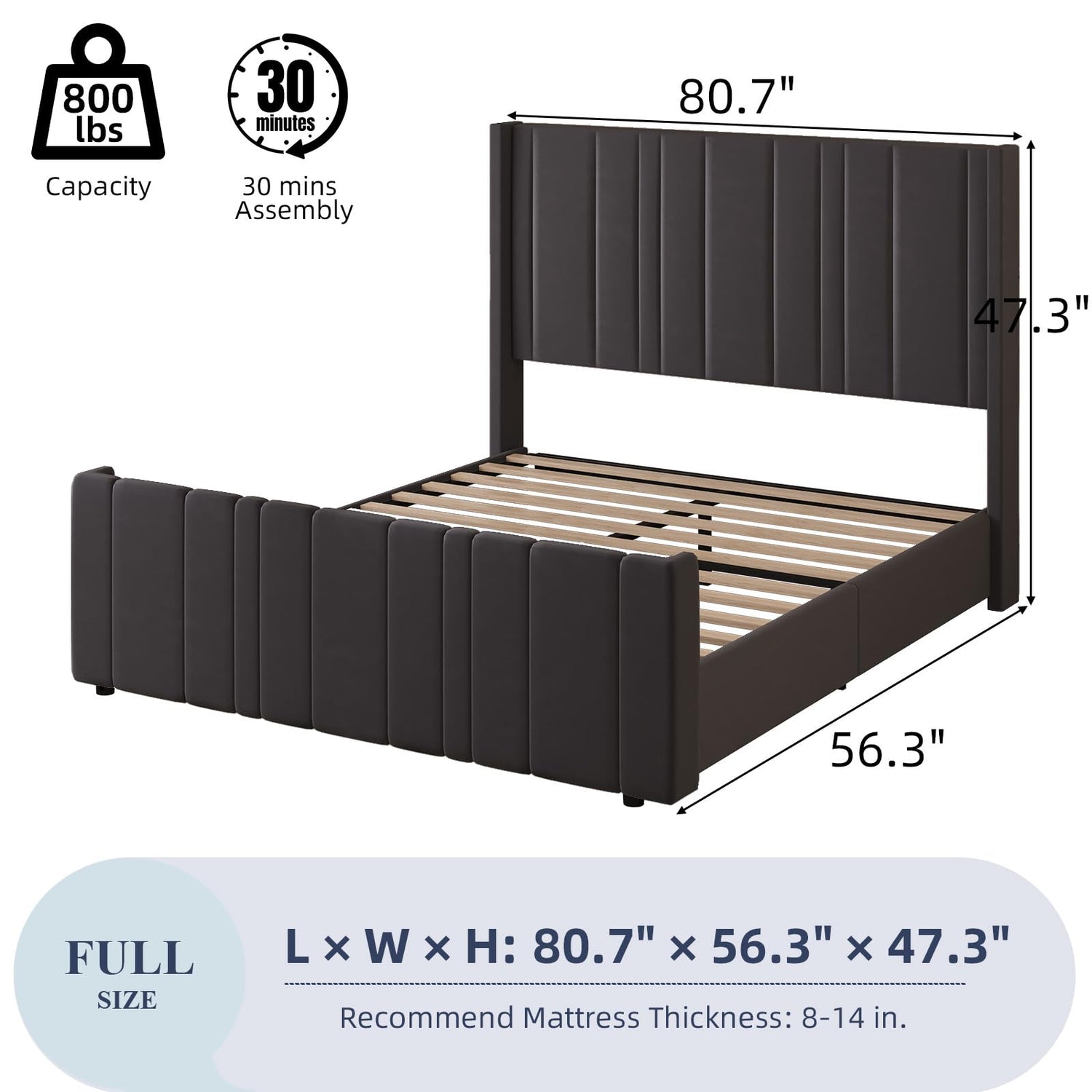 - Noise-Free: The upholstered bed frame full size enhanced stability with center support and legs, support up to 700lb. Study wood slats eliminate the need for a box spring, EVA foam for quiet sleep