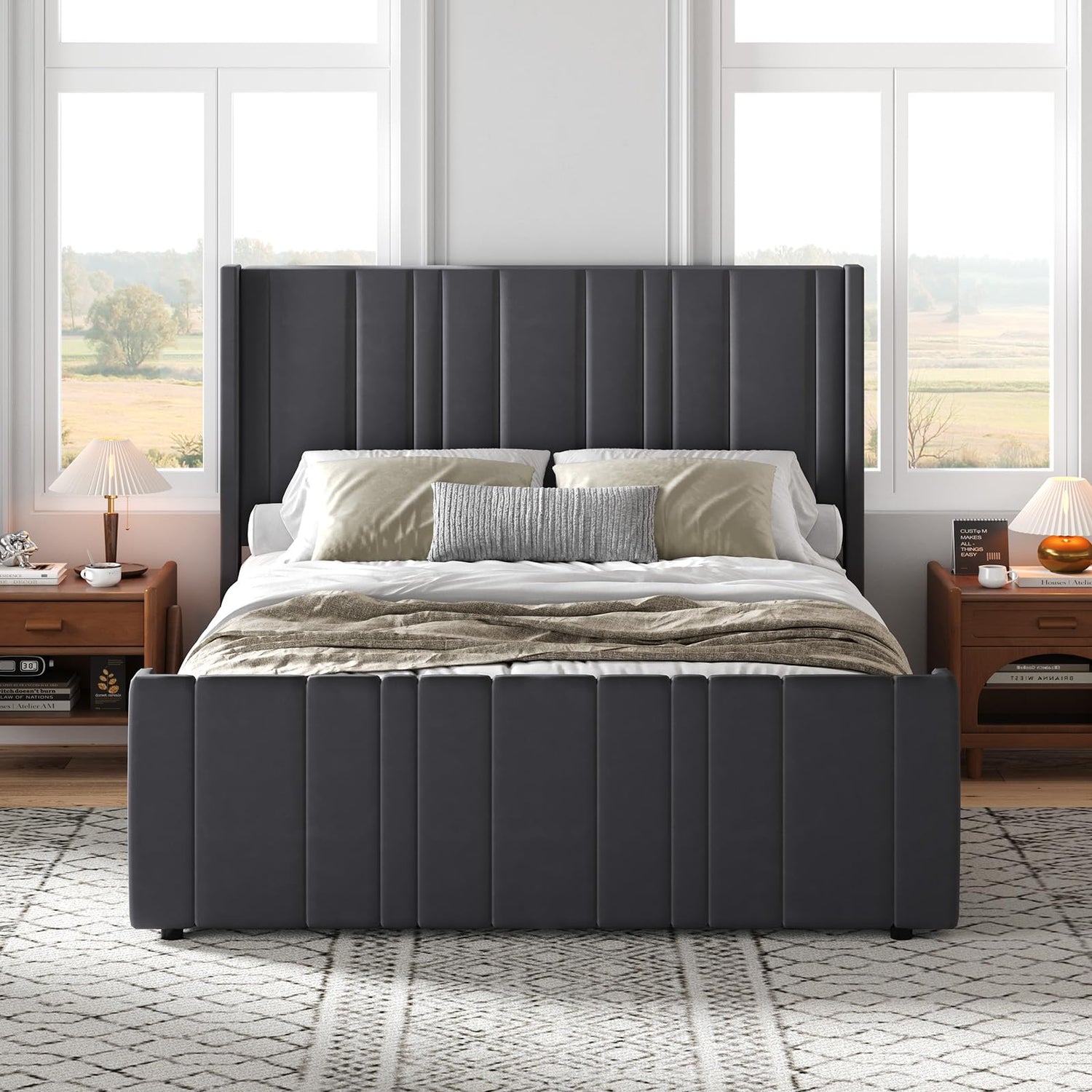 - Soft Velvet: Wrapped in comfortable soft velvet, the full bed frame showcases a elegant design with modern clean lines and low profile bed. The Vertical channel tufted of the full size bed frame in velvet and fully padded will decorate your room