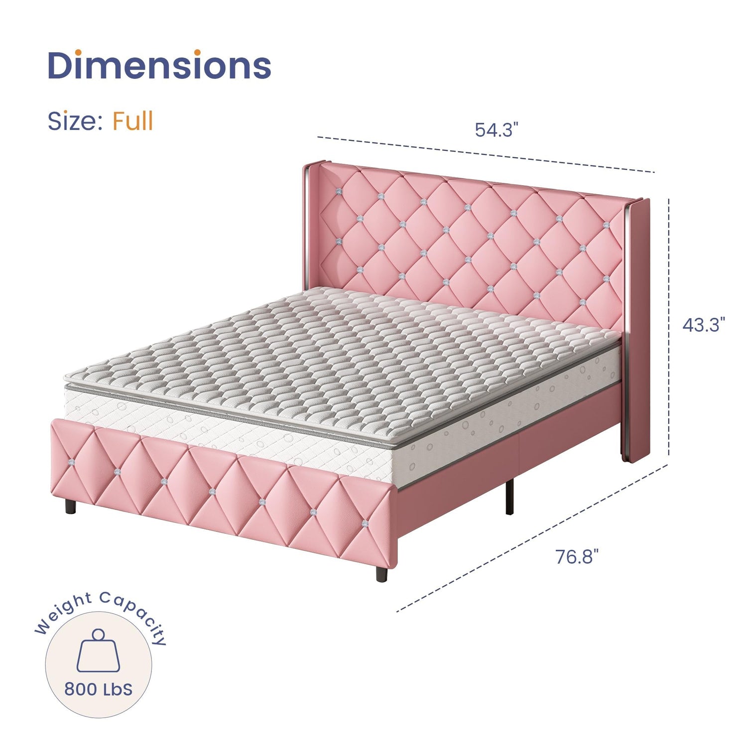 - Modern Luxury Style: Combining a stylish pink diamond headboard and footboard with the popular wingback design, this full size bed frame mixes easily with any bedroom style or color scheme