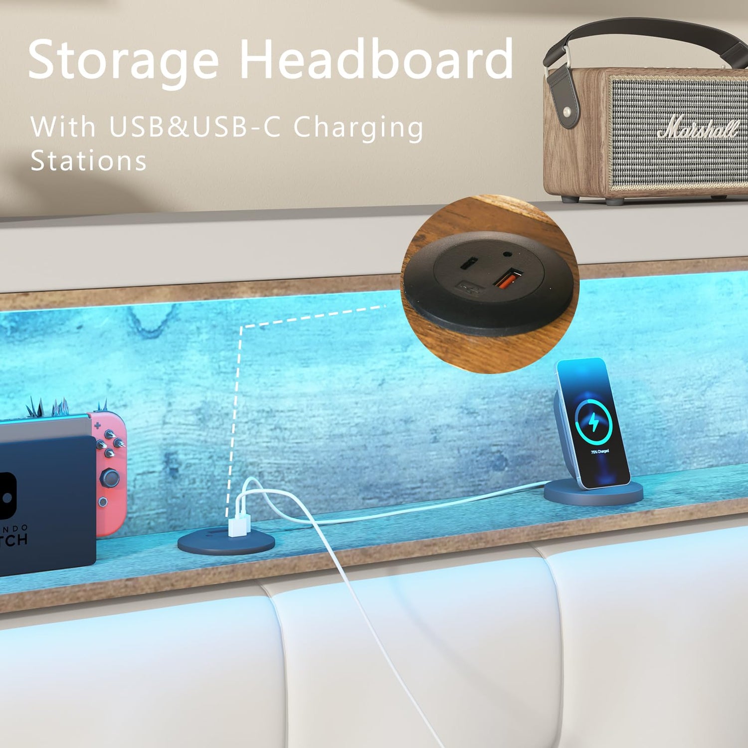 - Multifunctional Storage Space: The storage headboard comes with 2-layer storage shelves, which can easily store small items such as mobile phones, glasses and books. The storage space under the bed can easily collect shoe boxes and some storage boxes, keeping your bedroom clean and tidy
