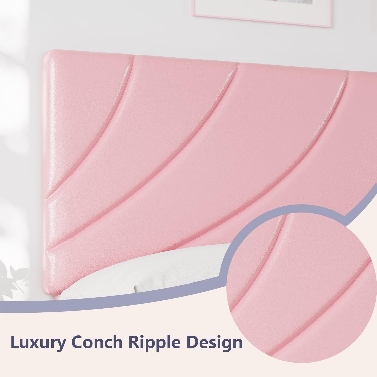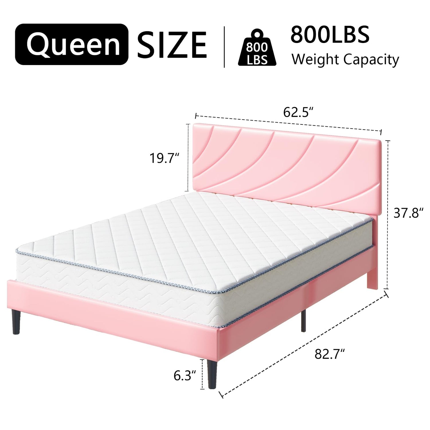 HOMBCK Queen Size Bed Frame/Faux Leather Upholstered Platform Bed with Headboard/Strong Wooden Slats/No Box Spring Needed/Easy Assembly/Pink