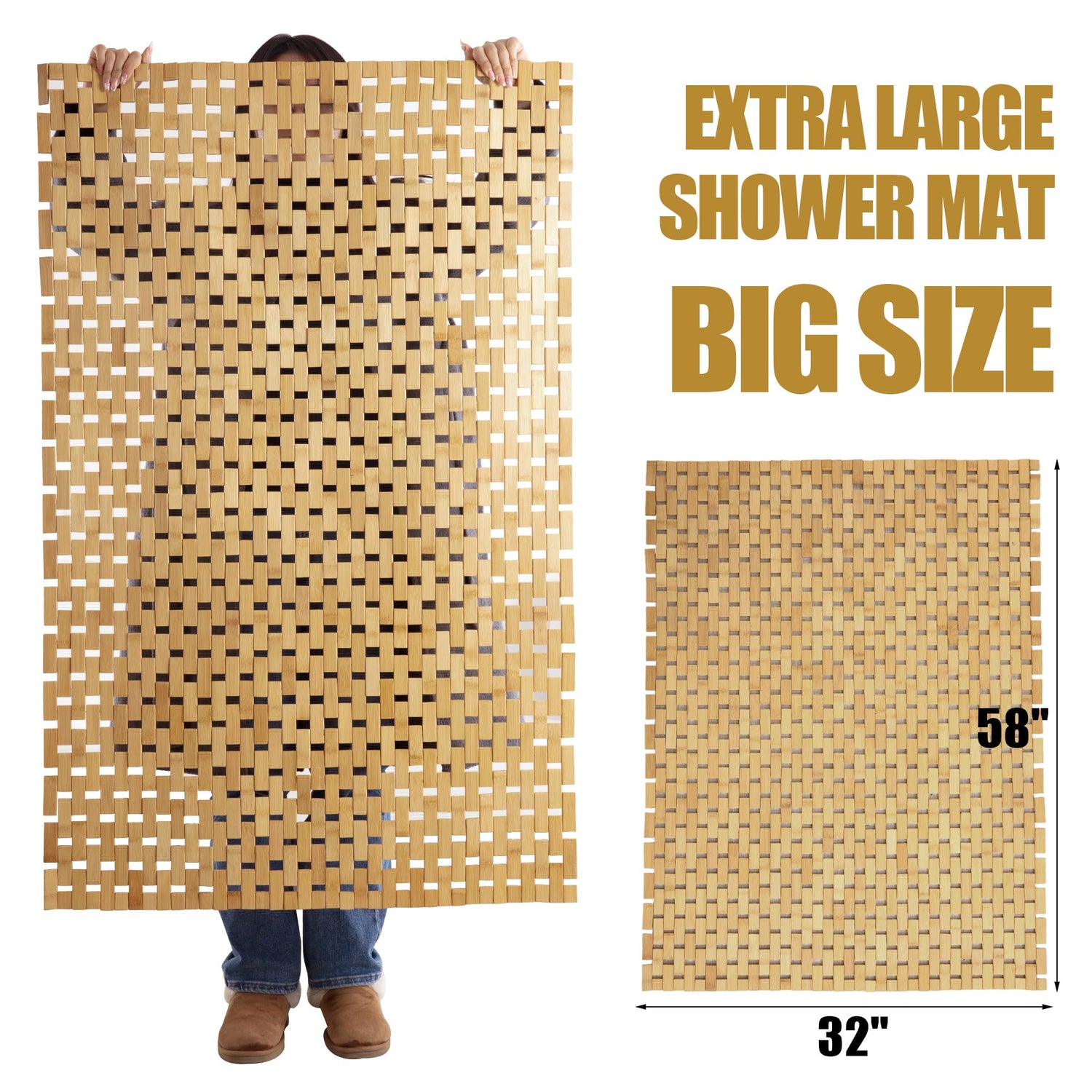 - Extra Large Shower Mat --- Oversized non-slip shower mat measures 58 x 32 inches, the larger size bath mat is more suitable for shower stalls. If you have small children or elderly people at home, and the standing water in the bathroom makes them prone to falling, putting this non-slip mat in the shower can add protection.