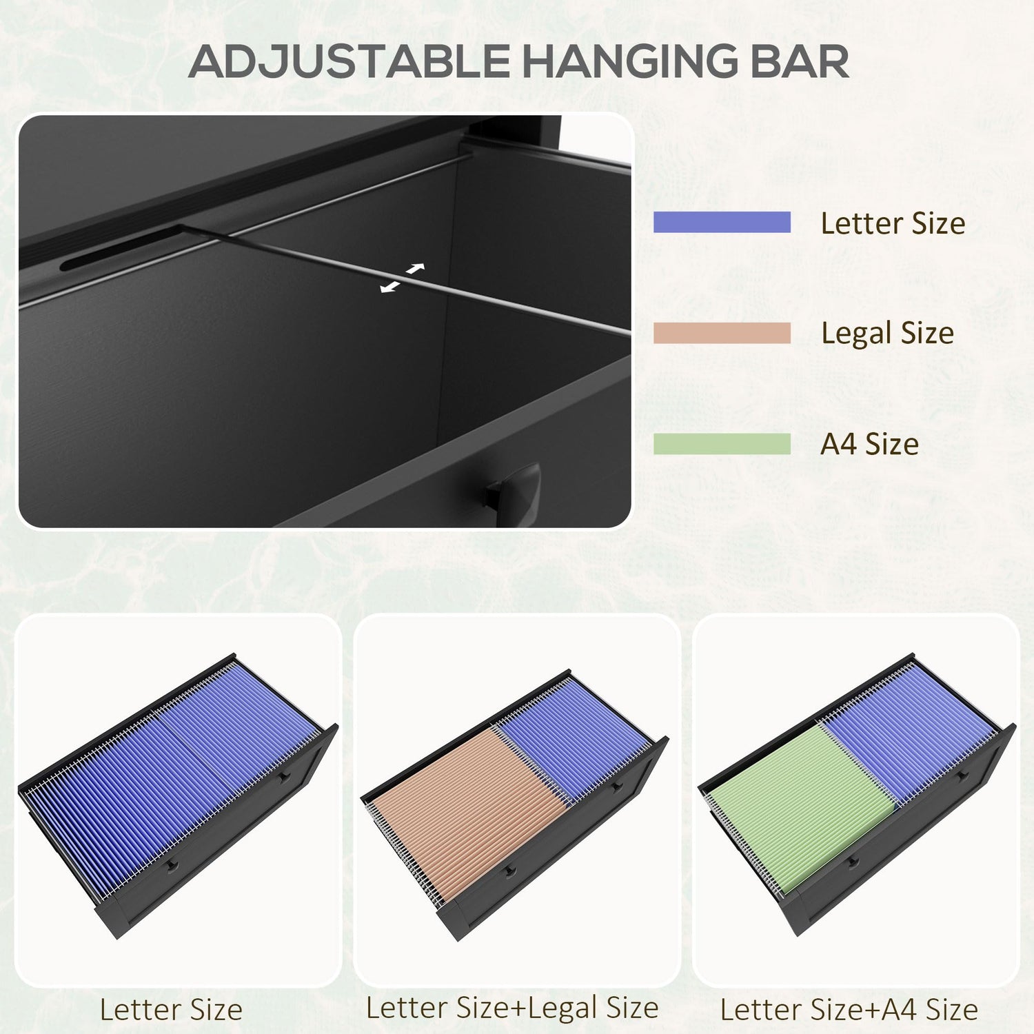 HOMCOM 2 Drawer File Cabinet with Lock, Lateral Filing Cabinet with Keys and Adjustable Hanging Bar for Letter, A4 and Legal Size, File Cabinet for Home Office, Black