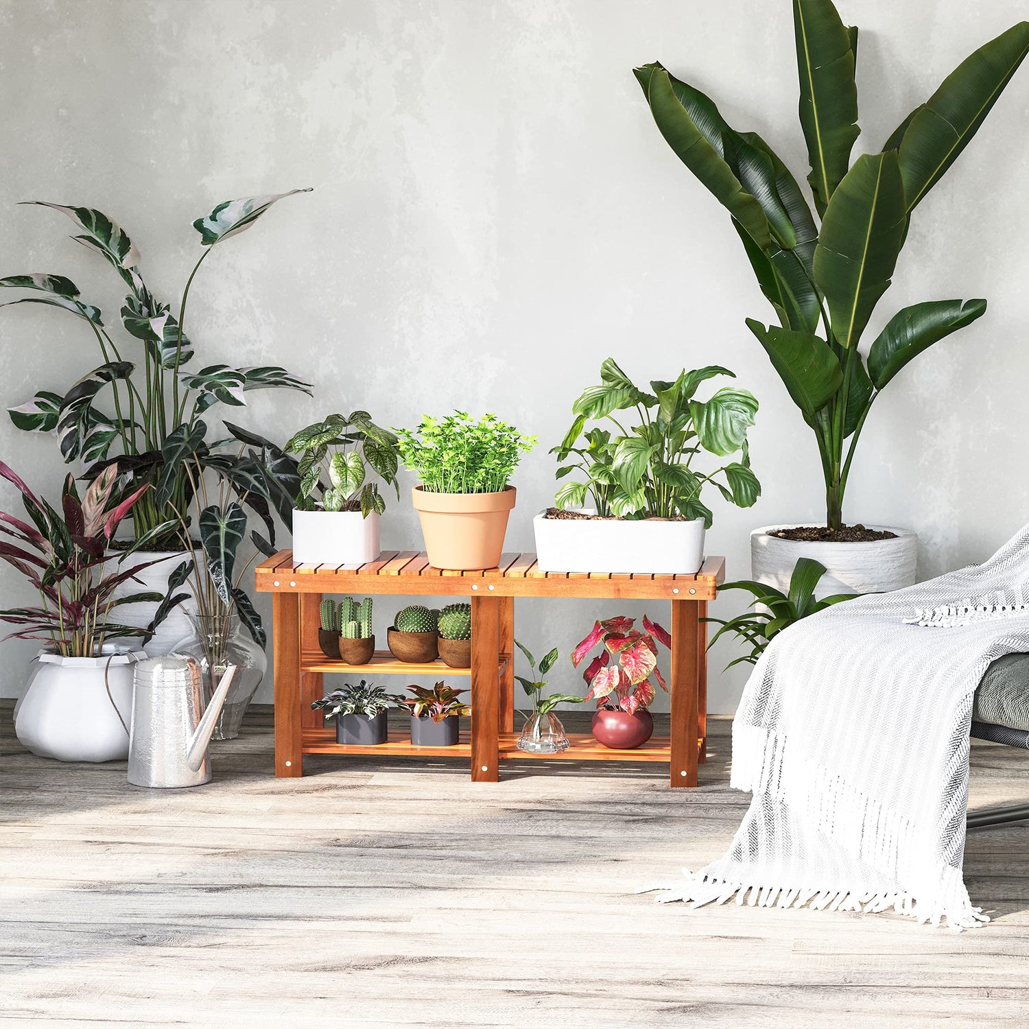 - Rustic Country Style: Simple lines and slatted wood construction create a minimalist, yet functional and stylish rectangle sized shoe rack that is ideal for entryway, hallway, bedroom and bathroom. Note: This rack is not water-fighting.