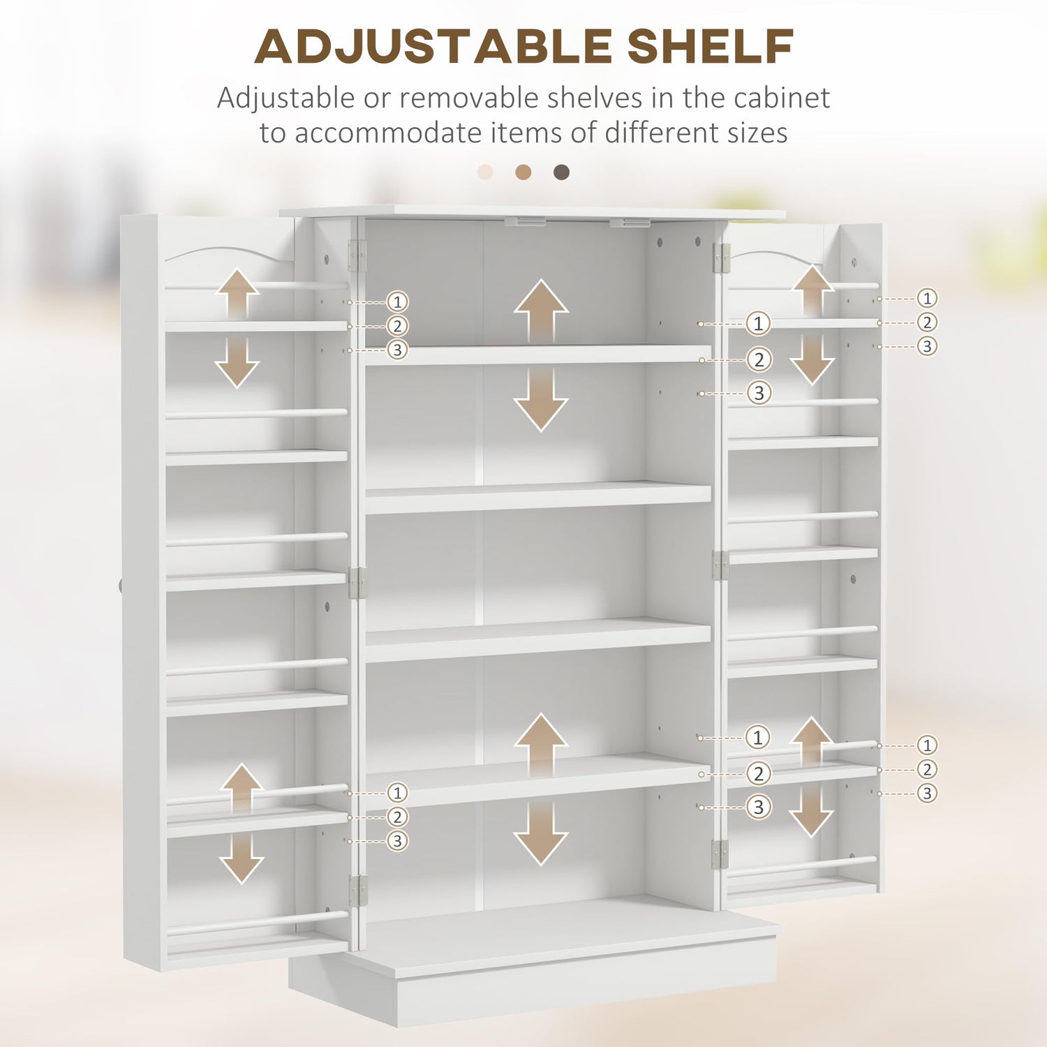 HOMCOM 41" Kitchen Pantry Storage Cabinet, Freestanding Kitchen Cabinet with 12 Door Shelves, Double Doors, 5-Tier Shelving and Adjustable Shelves, Paper White
