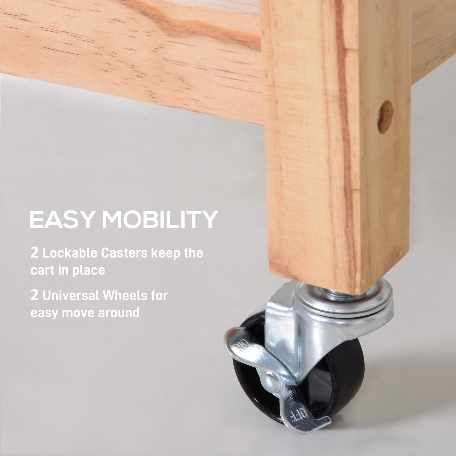 - Functional Multipurpose Cart: Made from robust pine hardwood with a sleek pinewood finish, this versatile cart can be used in the kitchen, dining area, living room, or bedroom.