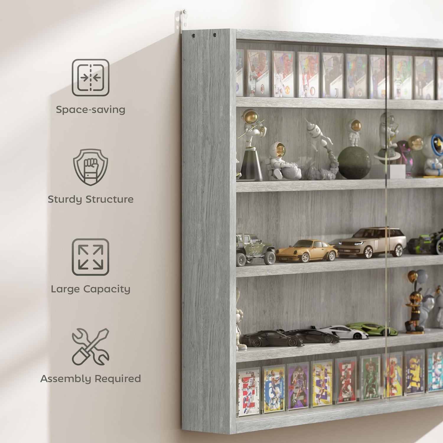 - Display Frame: This glass display cabinet is suitable for placing various small objects, such as commemorative medals, miniature figures, and collectibles.