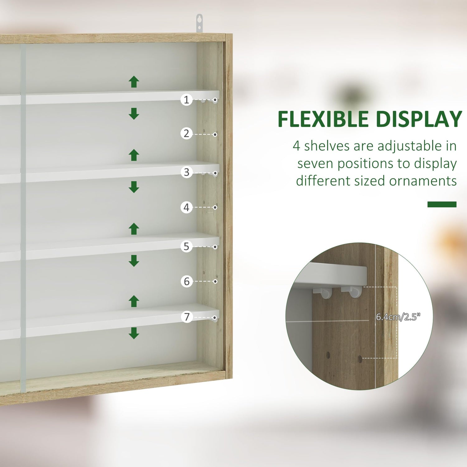 HOMCOM 5-Tier Display Cabinet, Glass Door Cabinet with Adjustable Shelves, Wall-Mounted Display Case for Playroom, Bedroom, Oak