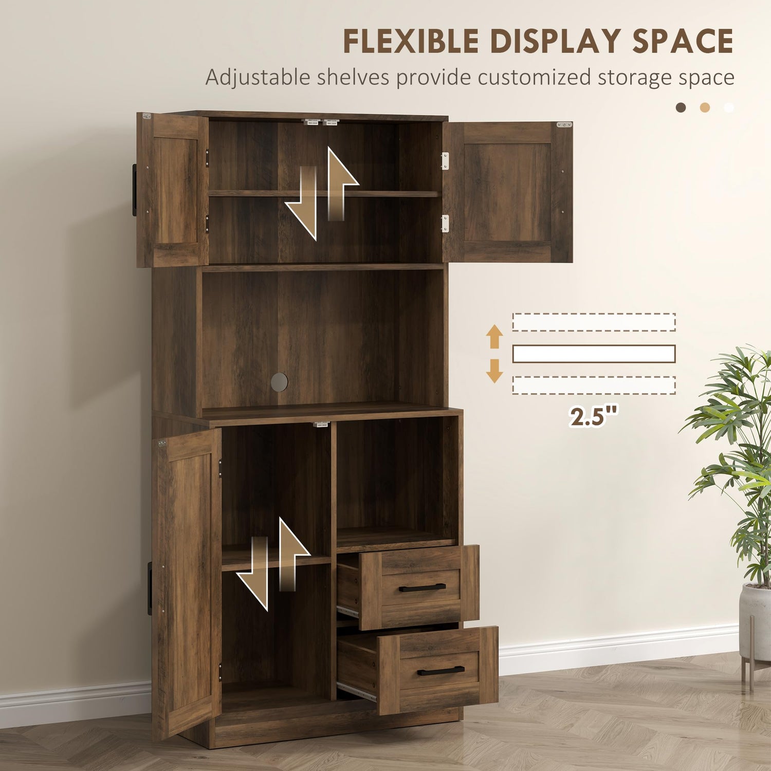 HOMCOM 71" Farmhouse Kitchen Pantry Storage Cabinet, Freestanding Tall Kitchen Hutch with Microwave Oven Countertop, Adjustable Shelves and Drawers, Brown