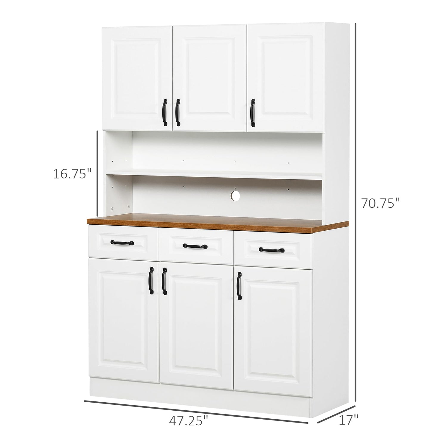 HOMCOM 71" Kitchen Pantry, Freestanding Buffet with Hutch, Farmhouse Storage Cabinet, Microwave Cabinet with 3 Drawers, 6 Doors, 2-Tier Countertop and Adjustable Shelves, White
