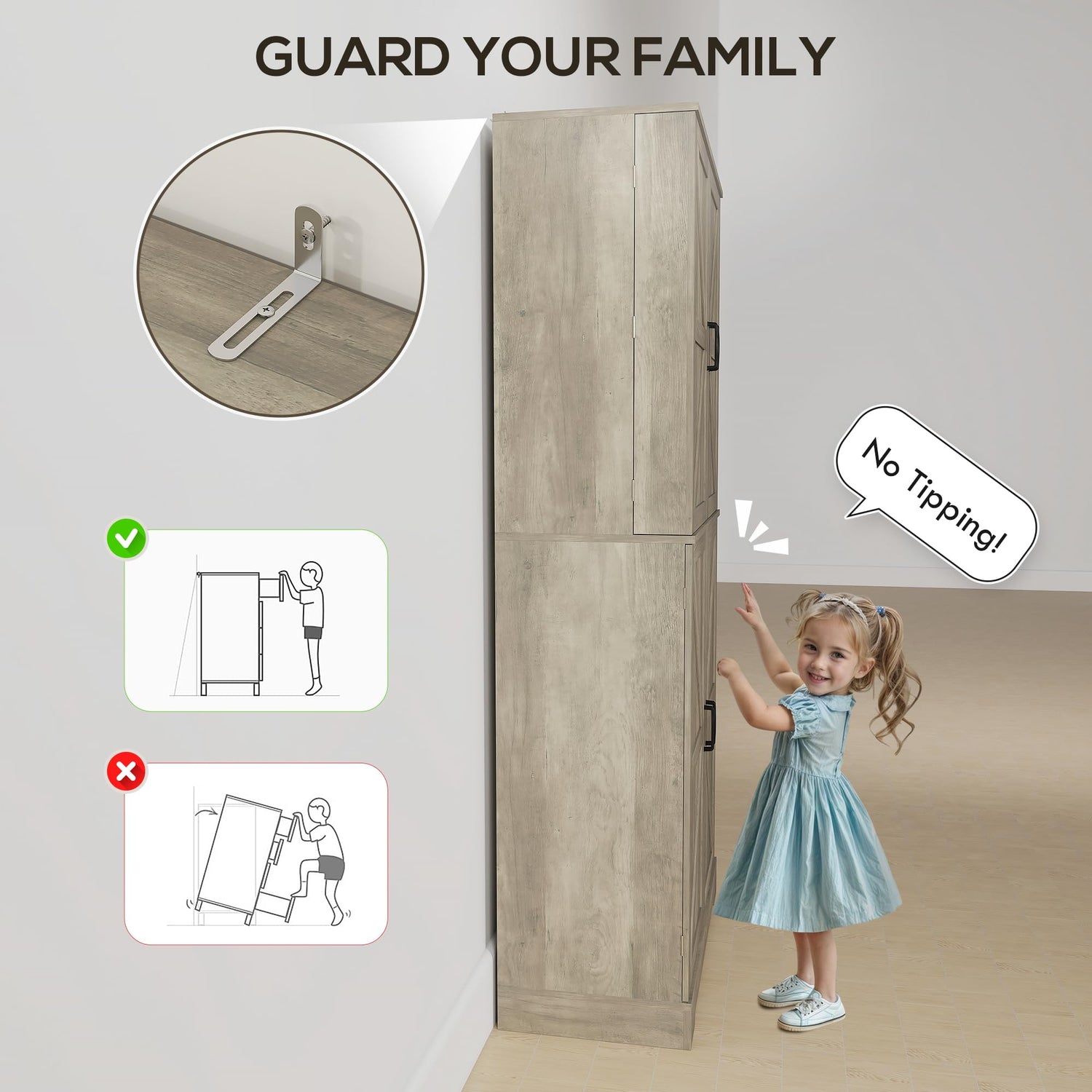 - Standing Safe and Secure: Crafted from quality particleboard with a solid structure that holds up to 280 lbs., this tall pantry cabinet is made for constant daily use. The included anti-tipping kit adds extra peace of mind, especially around little ones