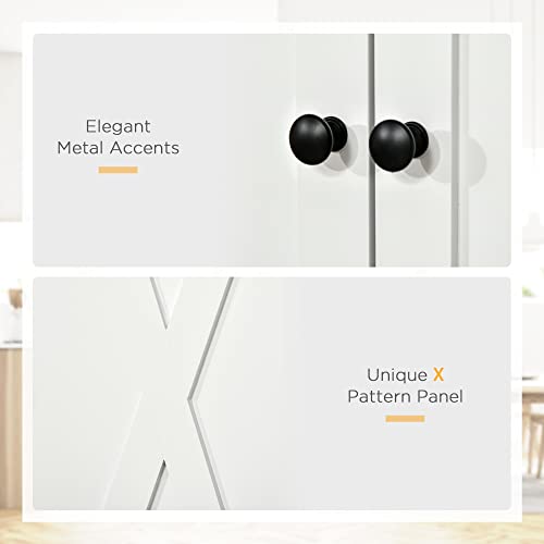 Adorned with an X-style panel and antique accents, this pantry cabinet seamlessly integrates into any kitchen, dining room, bathroom, or hallway. Its classic design not only serves as a functional storage solution but also acts as a charming focal point in your home décor.
