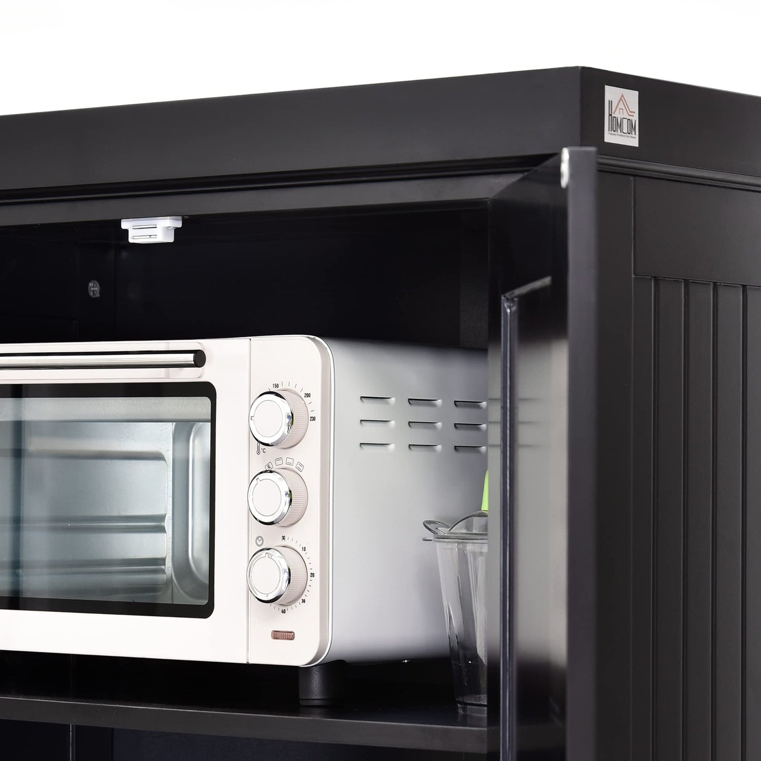 - Adjustable Shelving: Featuring 4 shelves with the top fixed and the lower adjustable for a variety of different sized items to be stored within the pantry cabinet, or remove all the shelves to create a single large display alcove. Each shelf has a maximum weight capacity of 22lbs.