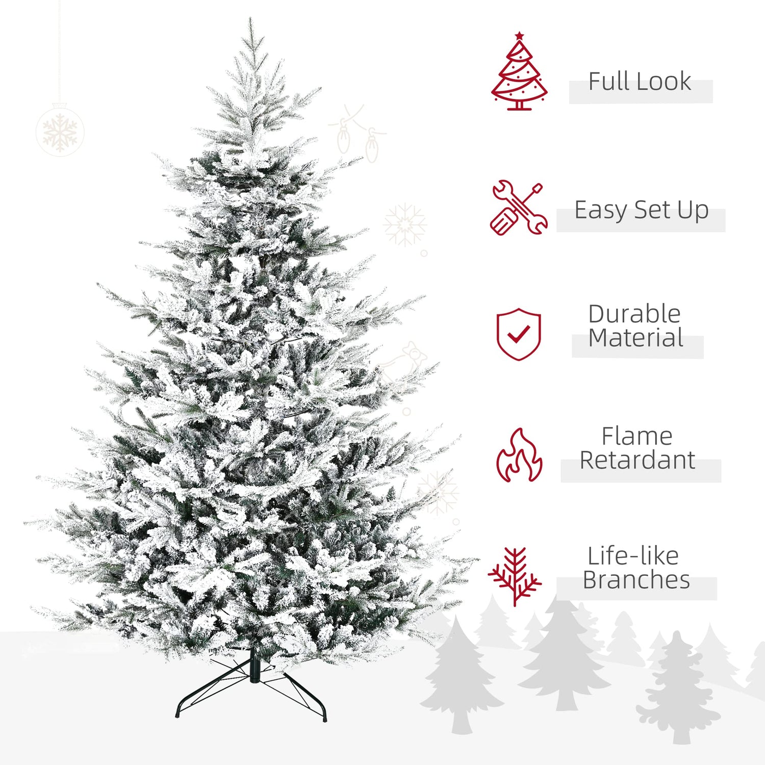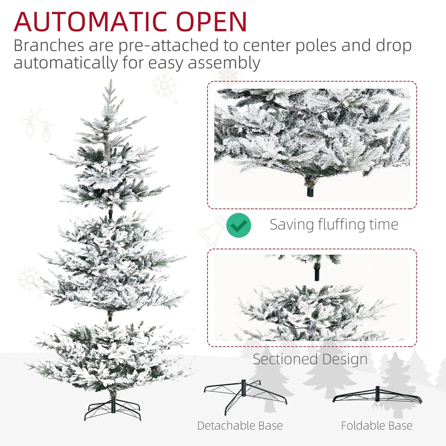 HOMCOM 8 Foot Pine Snow Flocked Artificial Christmas Tree with 1479 Realistic Cedar Branches, Auto Open, Home Holiday Decoration, Green