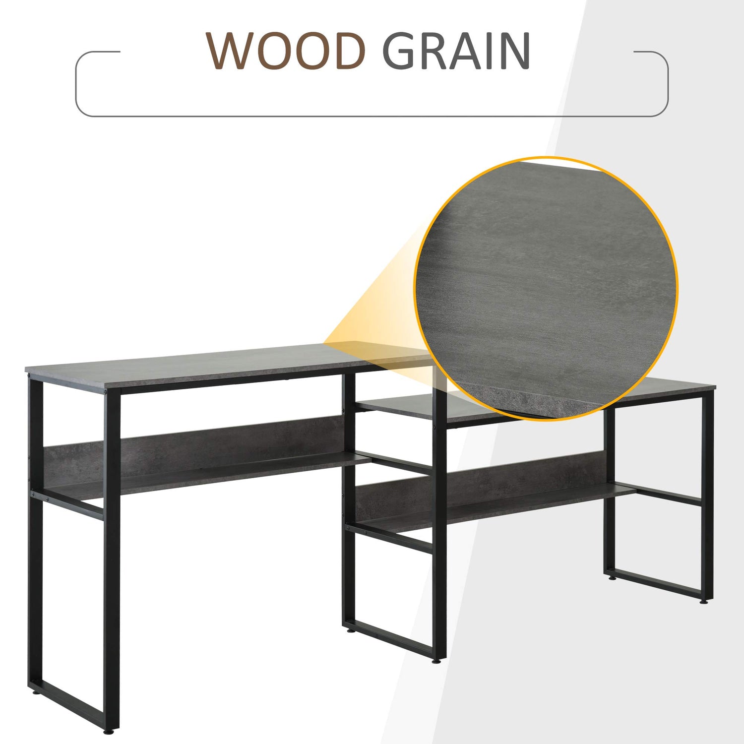 HOMCOM 86.5 Inch Two Person Desk Double Computer Table Writing Desk with Open Shelves Long Storage Workstation for Home Office Gray