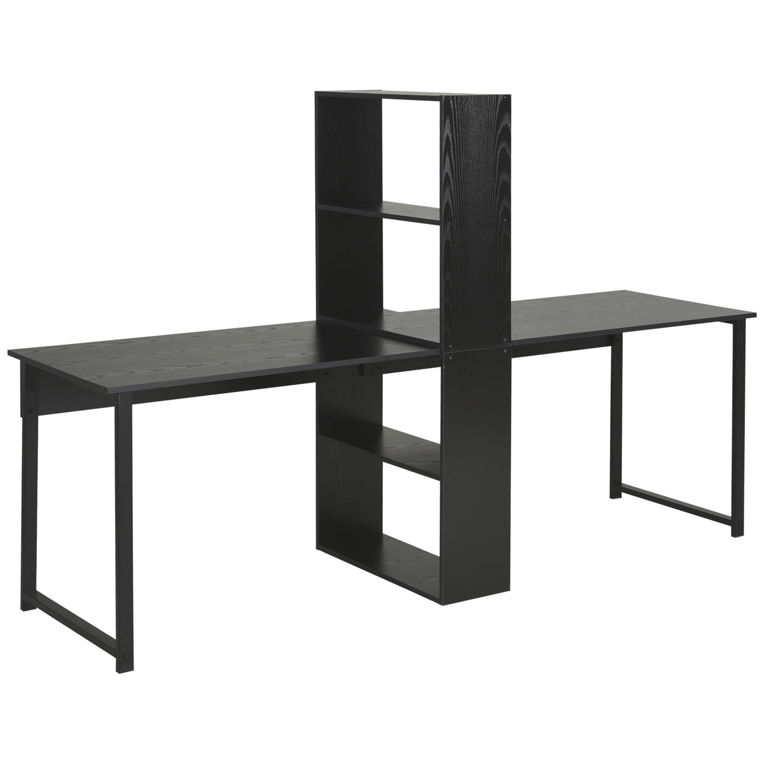 HOMCOM 88" Extra Long 2-Person Computer Desk with Storage Shelves Combo, Double Workstation Storage Study Writing Table for Home Office, Bookshelf, Black