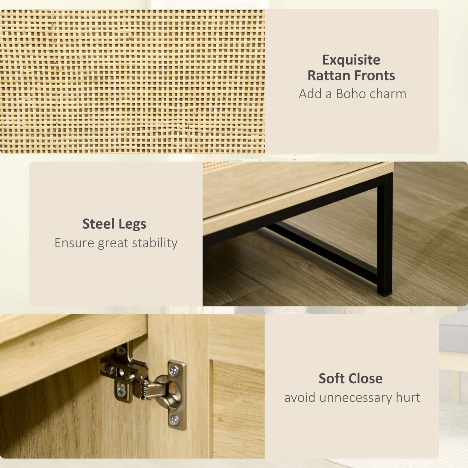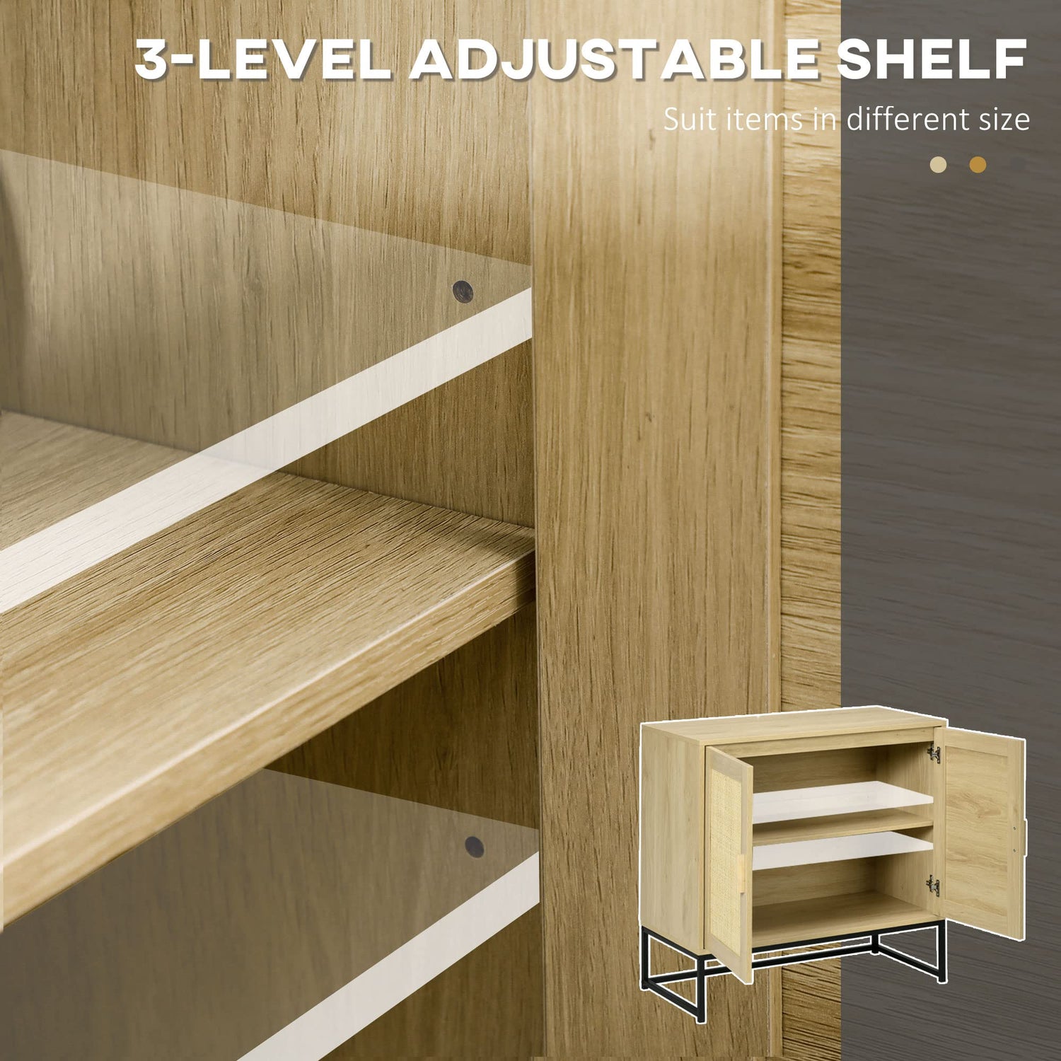 HOMCOM Accent Cabinet, Sideboard Buffet Cabinet with Rattan Doors, Adjustable Shelf and Metal Base, Boho Storage Cabinet for Living Room, Kitchen, Natural
