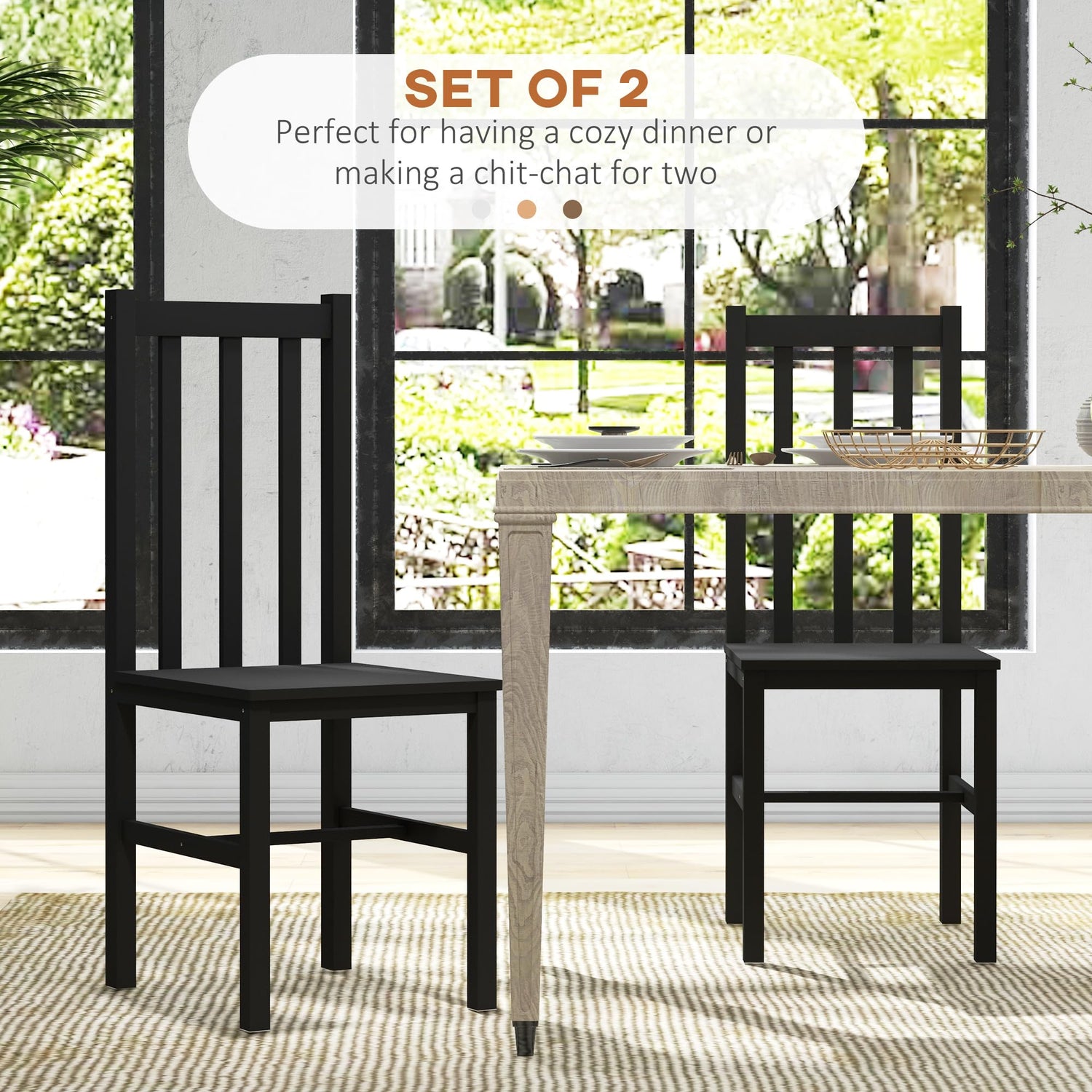 HOMCOM Dining Chairs, Set of 2 Farmhouse Kitchen & Dining Room Chairs with Slat Back, Pine Wood Seating for Living Room, Black