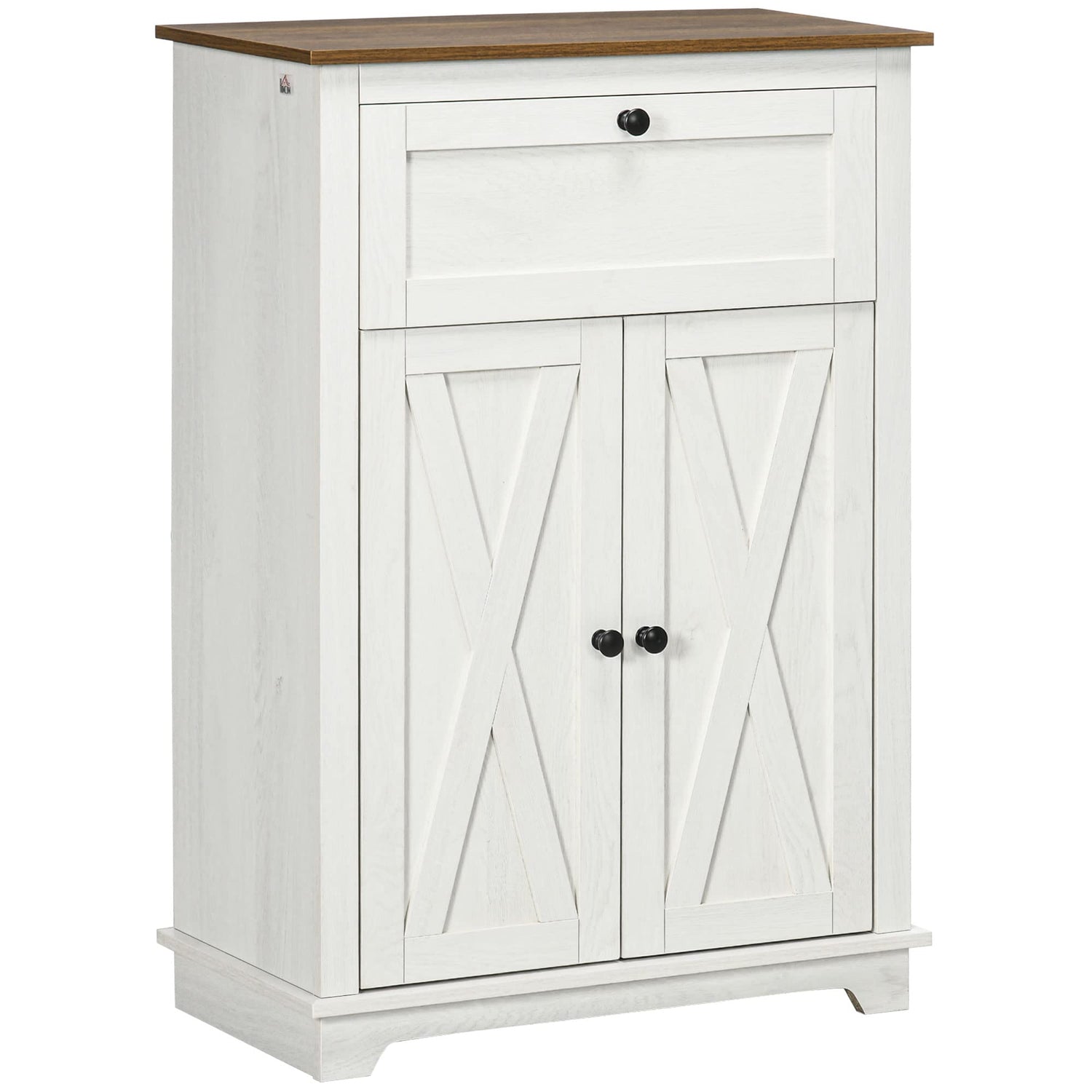 To keep your home stylish and tidy, look no further than this freestanding accent cabinet from HOMCOM. Cut to a clean shape for simplicity, it comes with a large drawer and a two-tier cabinet, offering enough storage for your variety of needs. The woodgrain and white combination create an excellent accent piece for your living room, bedroom, or entryway. Make your house a home with HOMCOM.