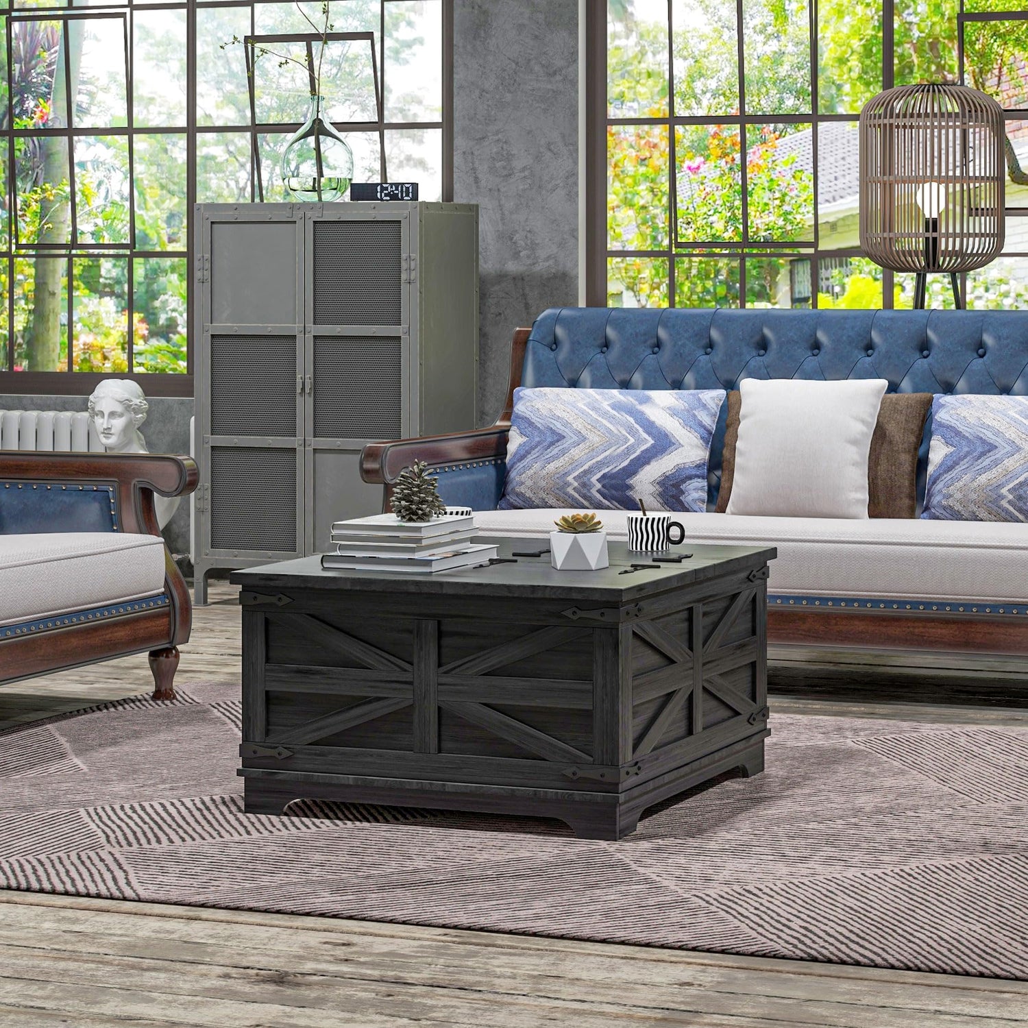 - Farmhouse Charm: This living room table will add a touch of charm and character with a raw, natural textured appearance in the wood and X-brace design on each side panel that plays a part in offering a farmhouse feel. Jet black corners can tie in other black colors inside your space.