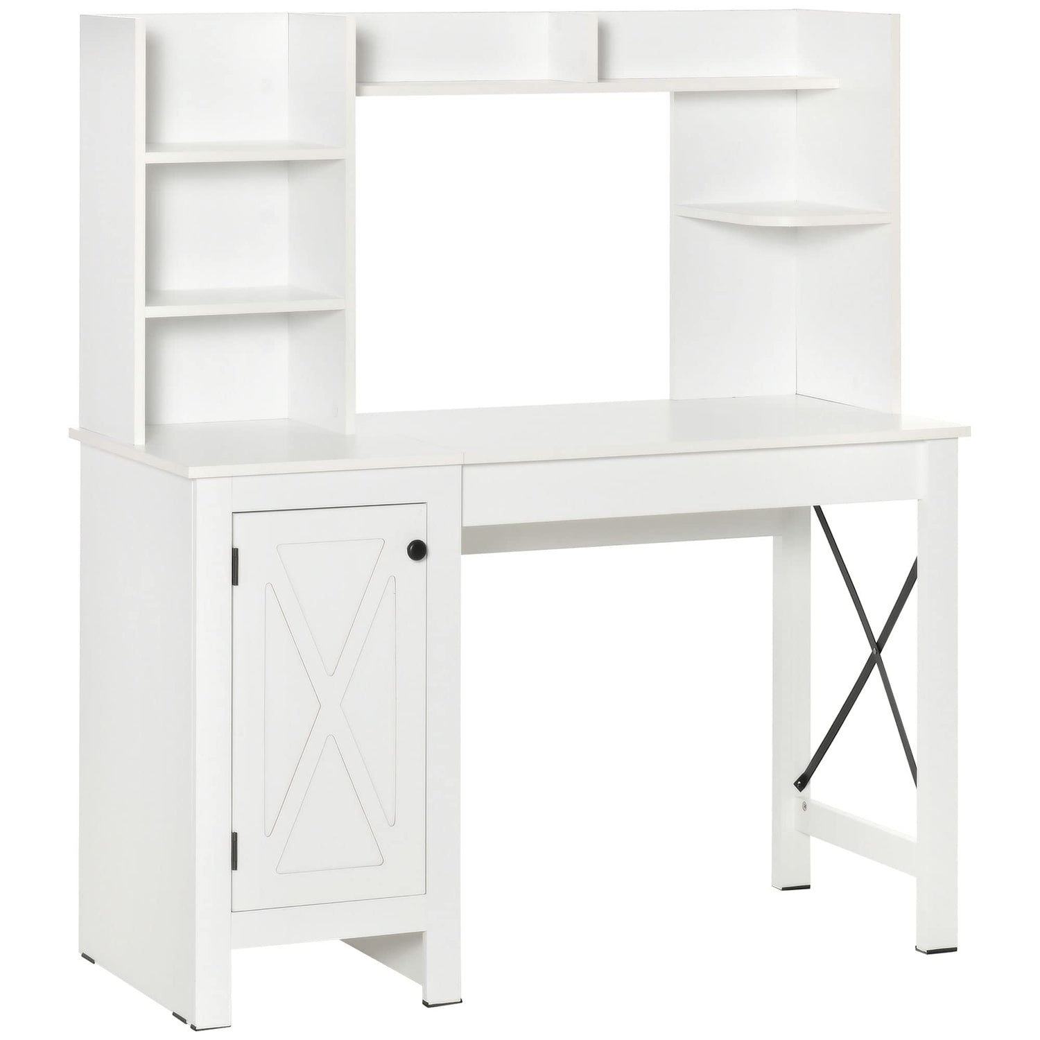 HOMCOM Farmhouse Computer Desk with Hutch and Cabinet, Home office Desk with Storage, for Study, White