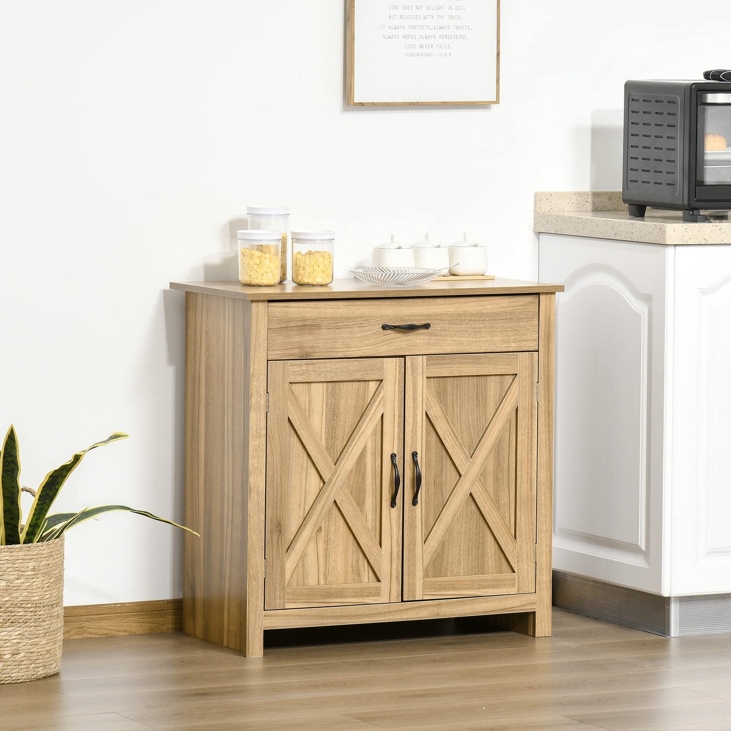 HOMCOM Farmhouse Sideboard Buffet Cabinet, Barn Door Coffee Bar Cabinet with Drawer and Adjustable Shelf, Kitchen Cabinet for Living Room, Entryway, Natural Wood Effect
