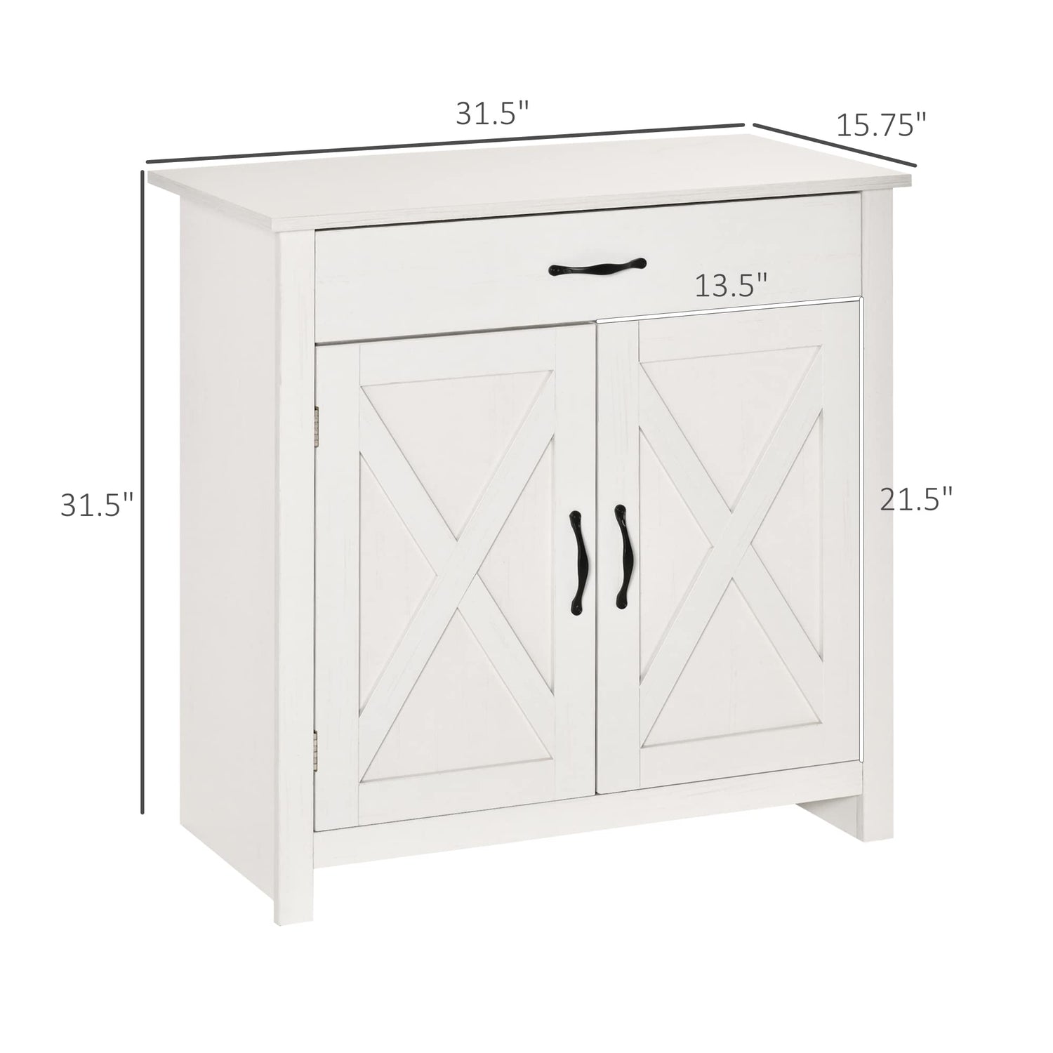 HOMCOM Farmhouse Sideboard Buffet Cabinet, Barn Door Coffee Bar Cabinet with Drawer and Adjustable Shelf, Kitchen Cabinet for Living Room, Entryway, White Wash