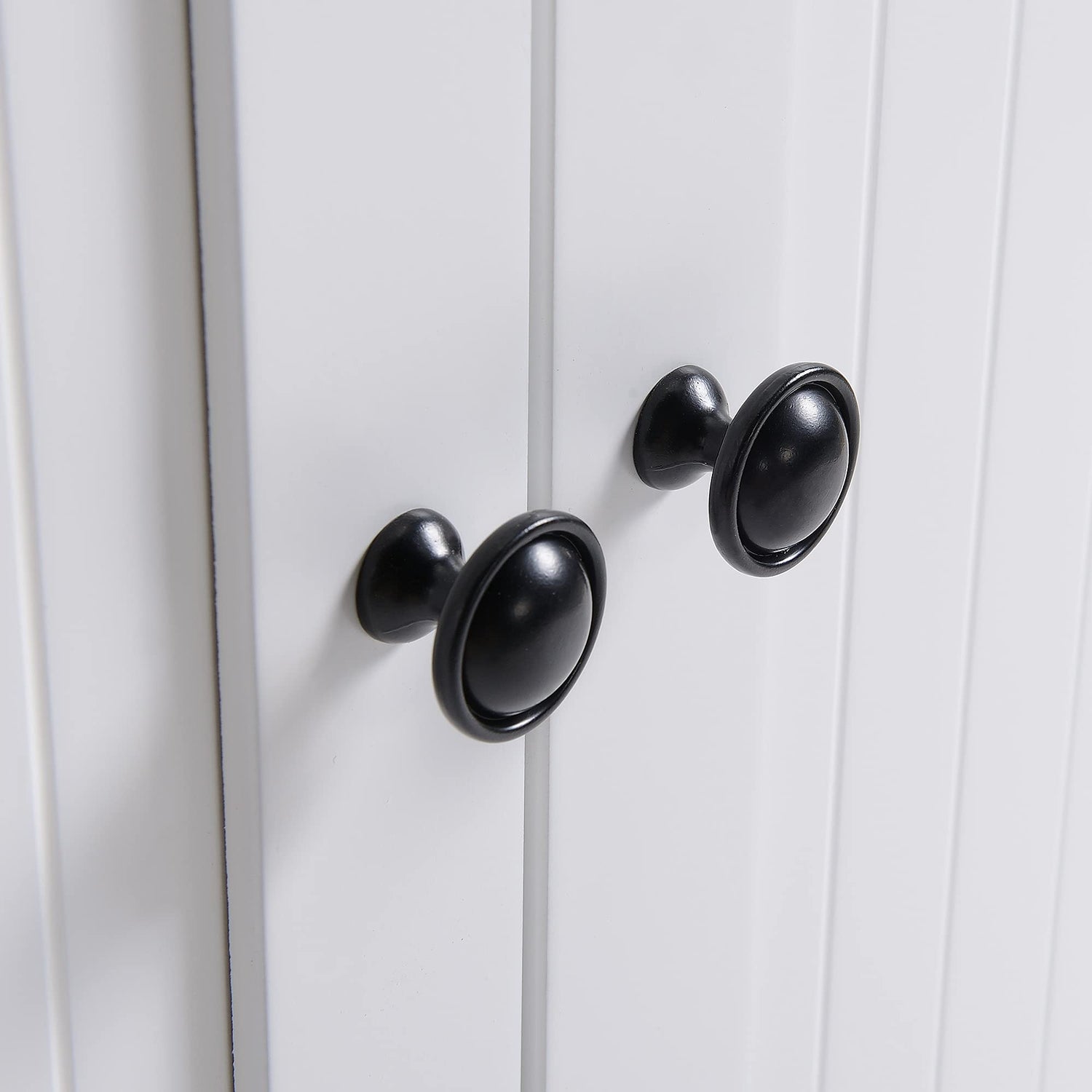 - Raised fluted door panel with antique style drawer and door pulls for extra beauty