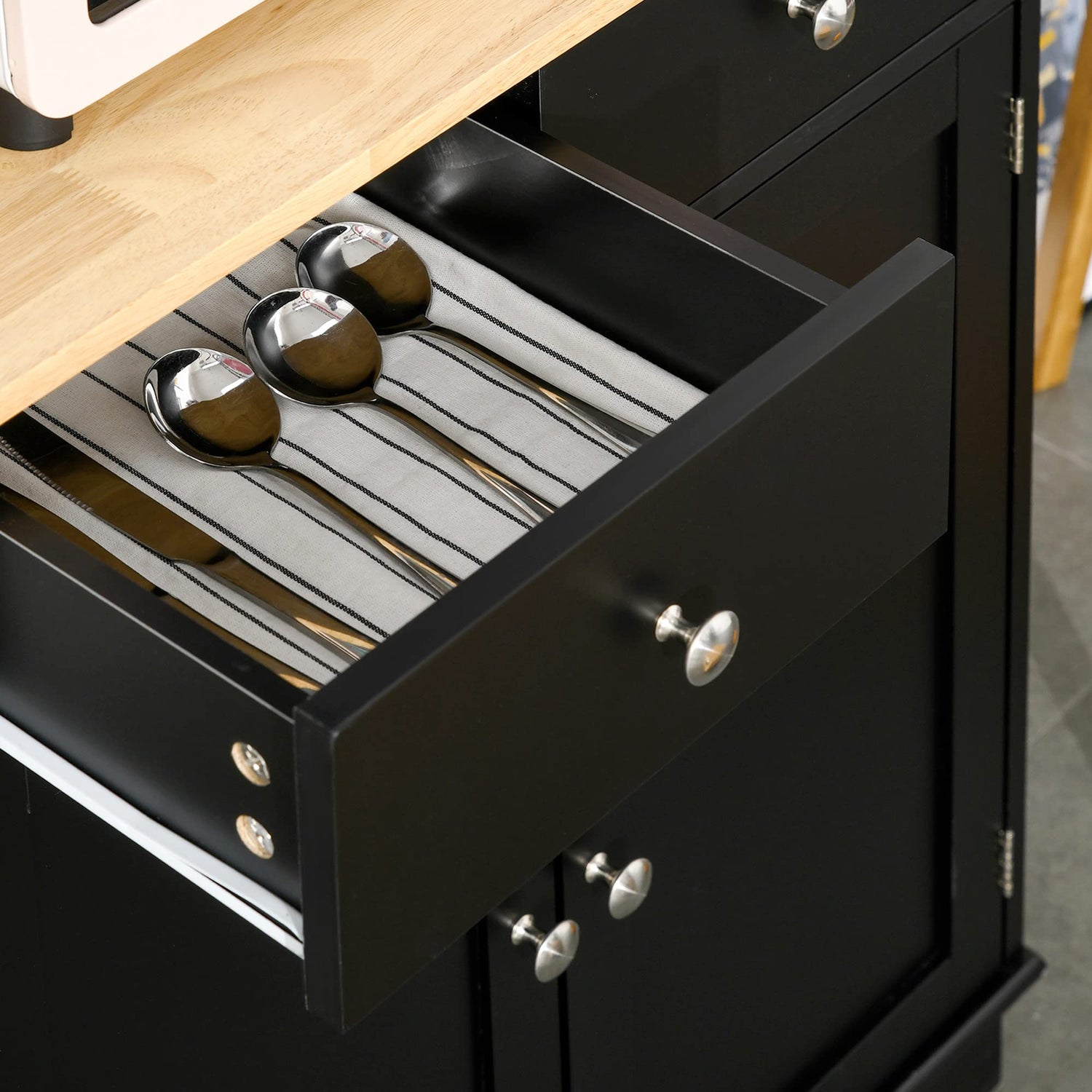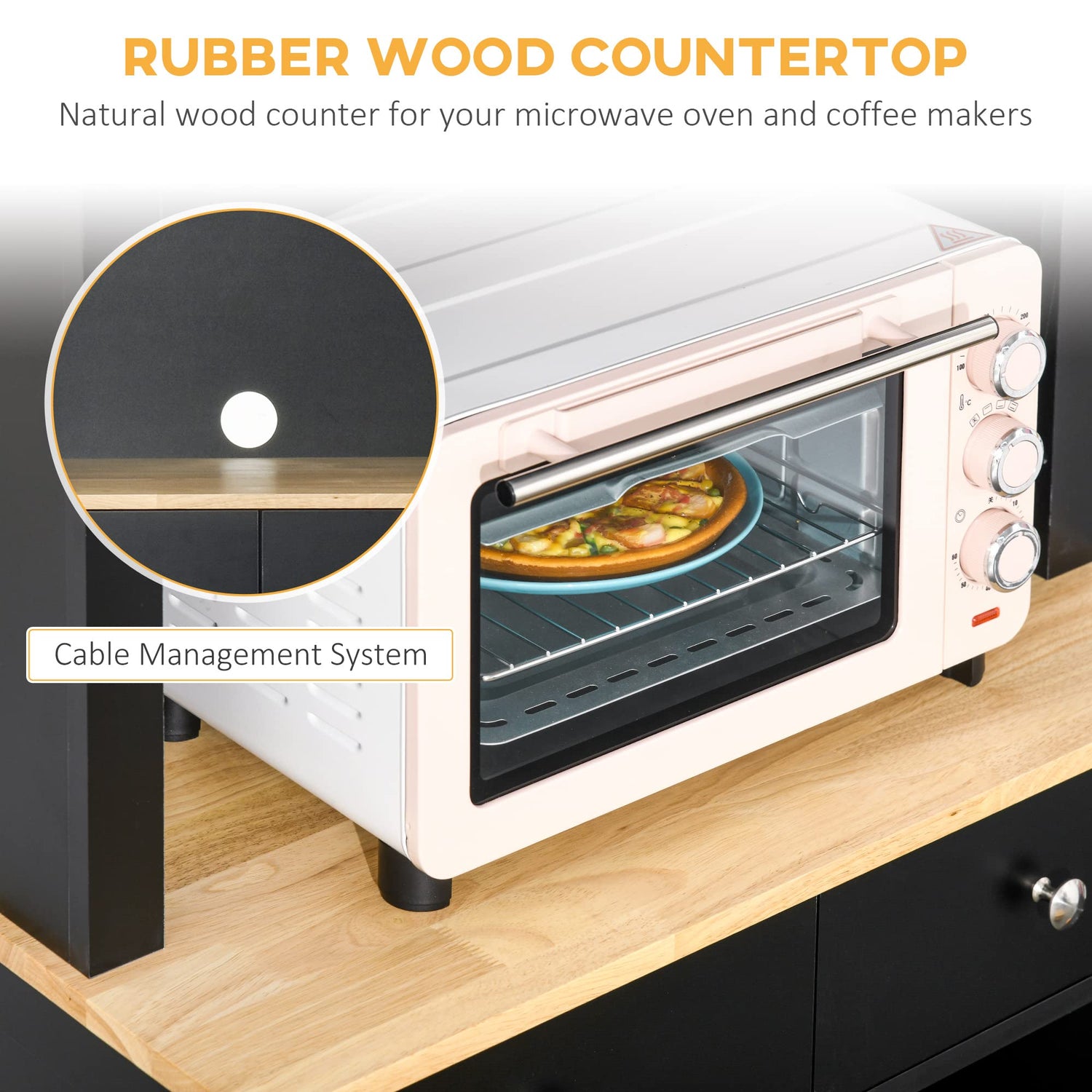 HOMCOM Freestanding 67" Kitchen Buffet with Hutch, Pantry Cabinet with Microwave Stand, Adjustable Shelf, 2 Drawers, Cupboard, Black