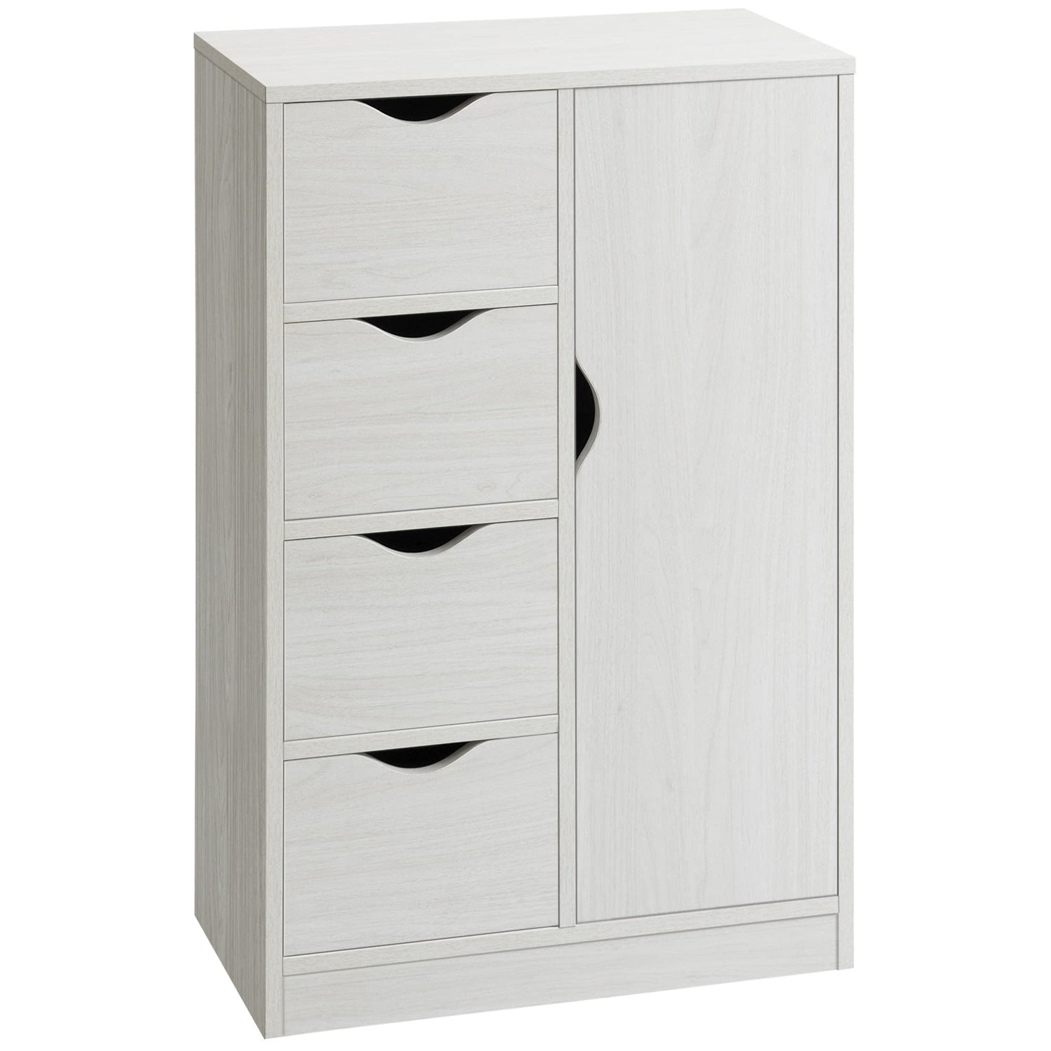 HOMCOM Freestanding Storage Cabinet, Bathroom Floor Cabinet with 4 Drawers and Door, White Wood Grain