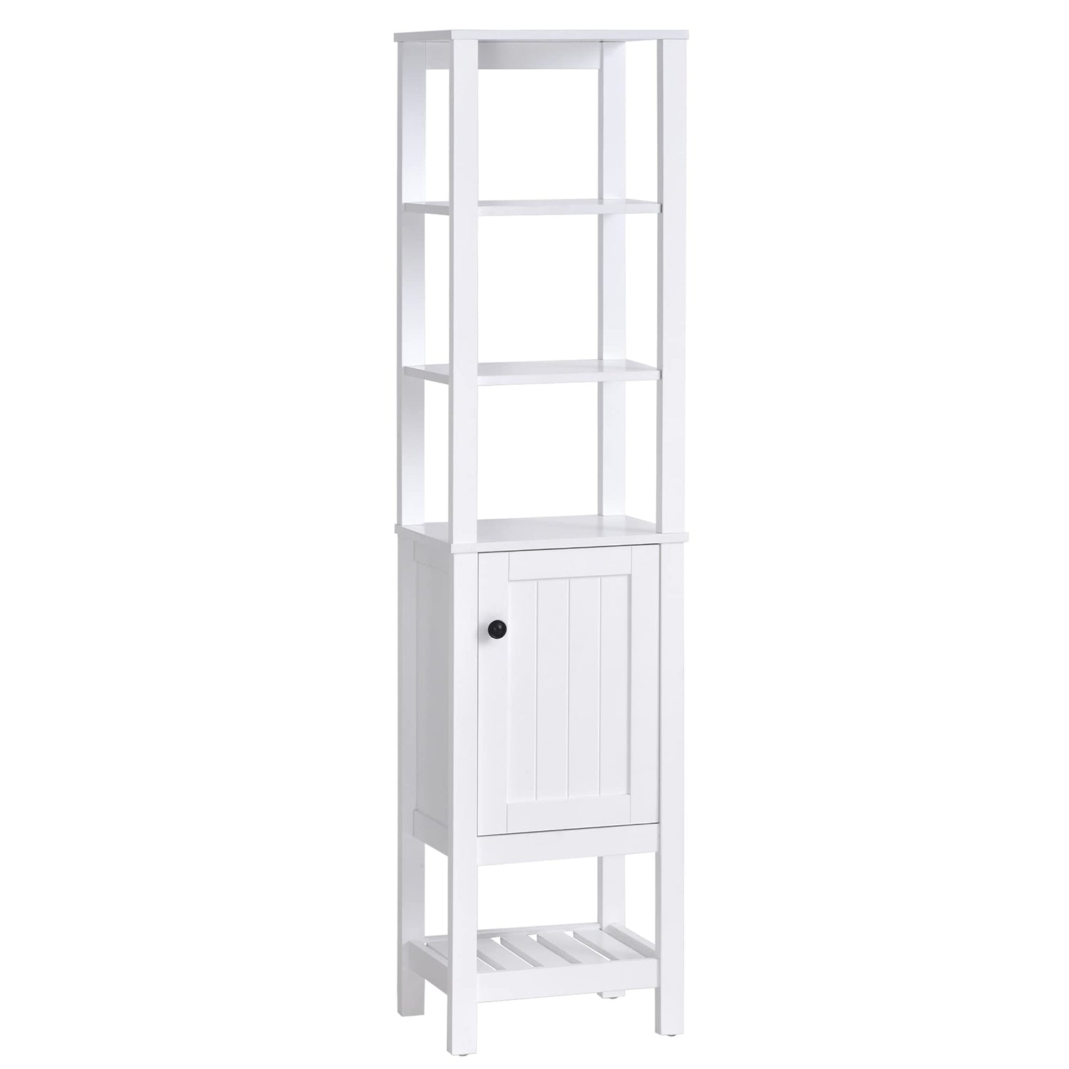 HOMCOM White Freestanding Tall Bathroom Storage Cabinet with Shelves