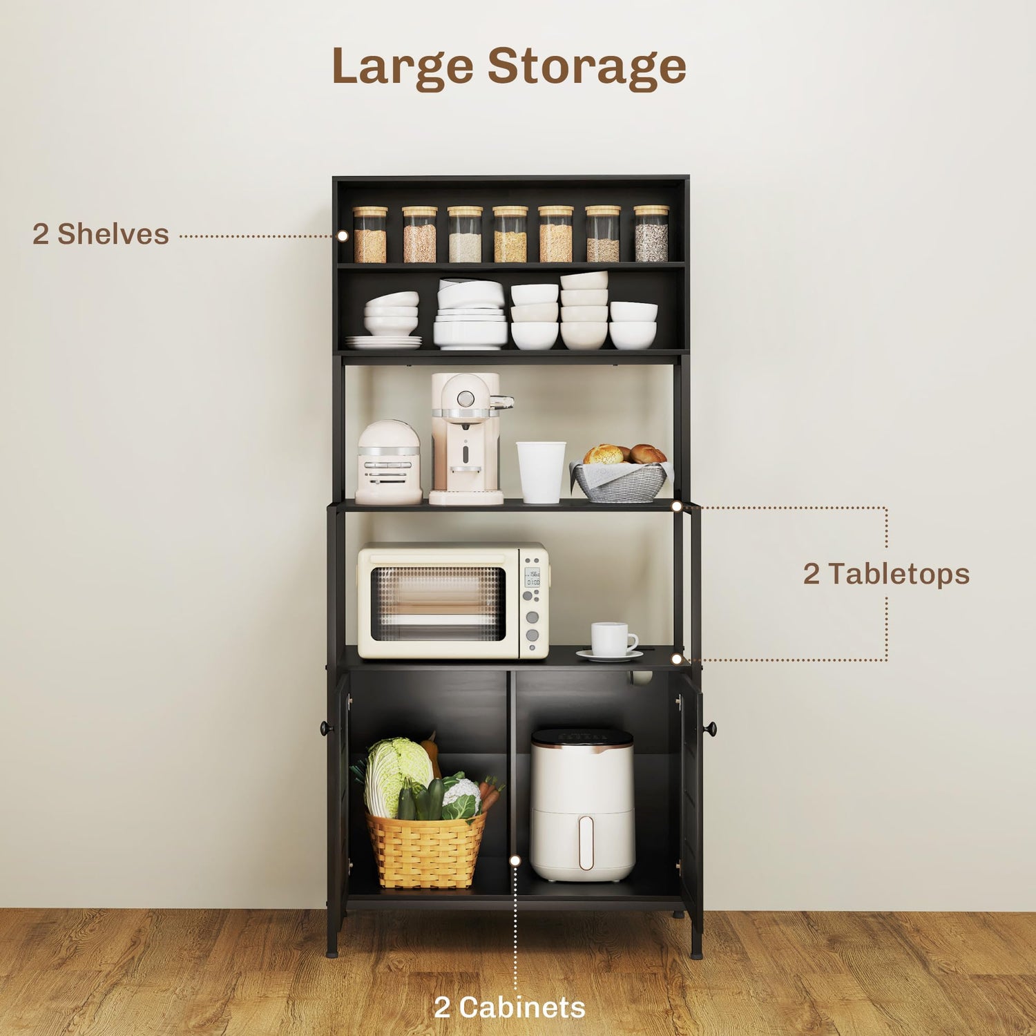- Spacious Storage Options: Features two shelves, two tabletops, and two cabinets, making this coffee bar cabinet versatile for storing all your kitchen essentials, from microwaves to coffee makers, suitable for kitchen, living room, dining room, and more
