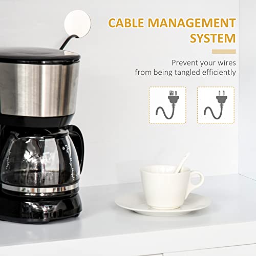 - Adjustable Shelves: If you have taller items, the adjustable shelves inside this microwave cabinet can be customized to fit items like pitchers, pasta containers and blenders, or remove all the shelves to create a whole space for big and tall kitchen applications. A cable management hole on the back to keep your wires organized and out of the way.