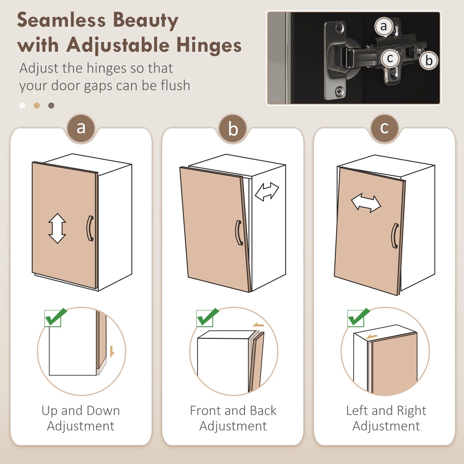 - Seamless Modern Charm: Experience a visually pleasing look with our functional kitchen hutch, thanks to the adjustable door hinges. Its sleek modern design, complemented by minimalist metal handles, captivating glass doors, and a striking contrast counter board color, adds a touch of timeless elegance to your home.