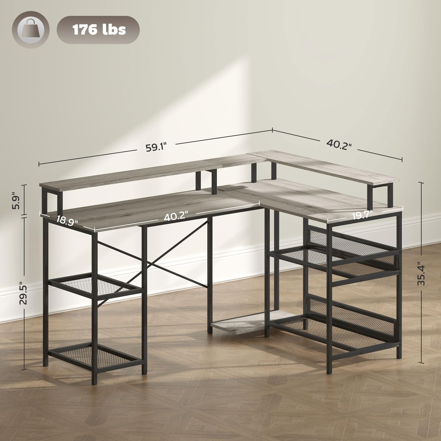 - Ergonomic Elevated Viewing Angles: Our corner desk includes ergonomic monitor stands on both tabletops, lifting your screens by 6 inches to minimize neck strain and provide an optimal viewing angle. Say goodbye to discomfort and hello to enhanced focus