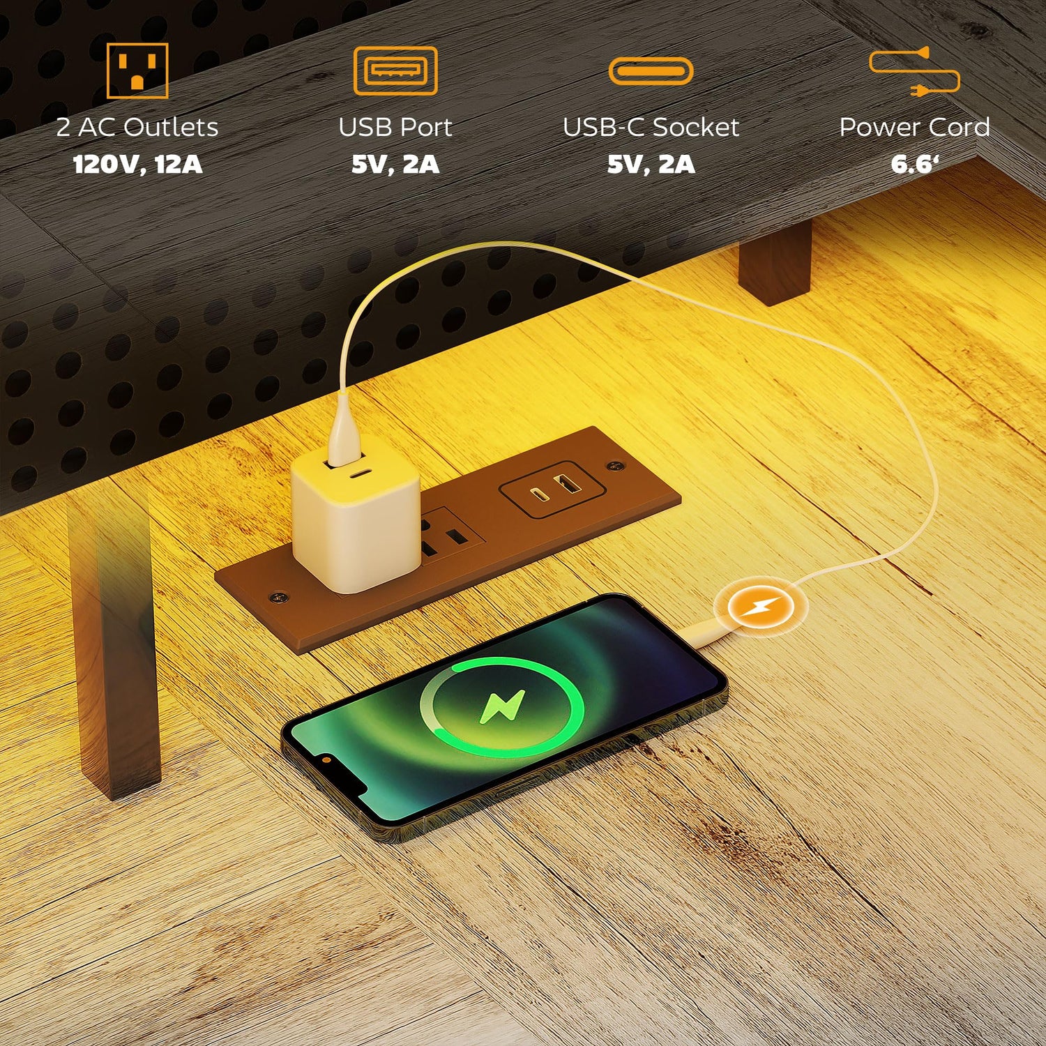 - Effortless Power Access: Featuring two standard outlets, a USB port, and a USB-C port, this home office desk brings convenience right to your fingertips, making charging and connectivity a breeze during intense gaming or work sessions