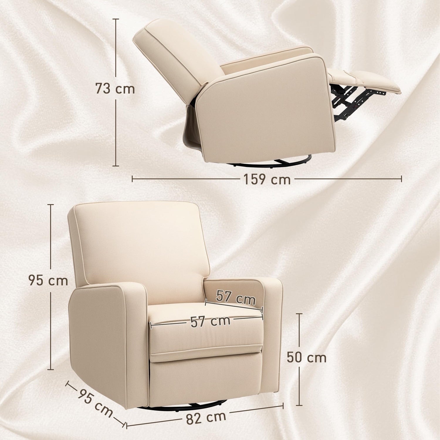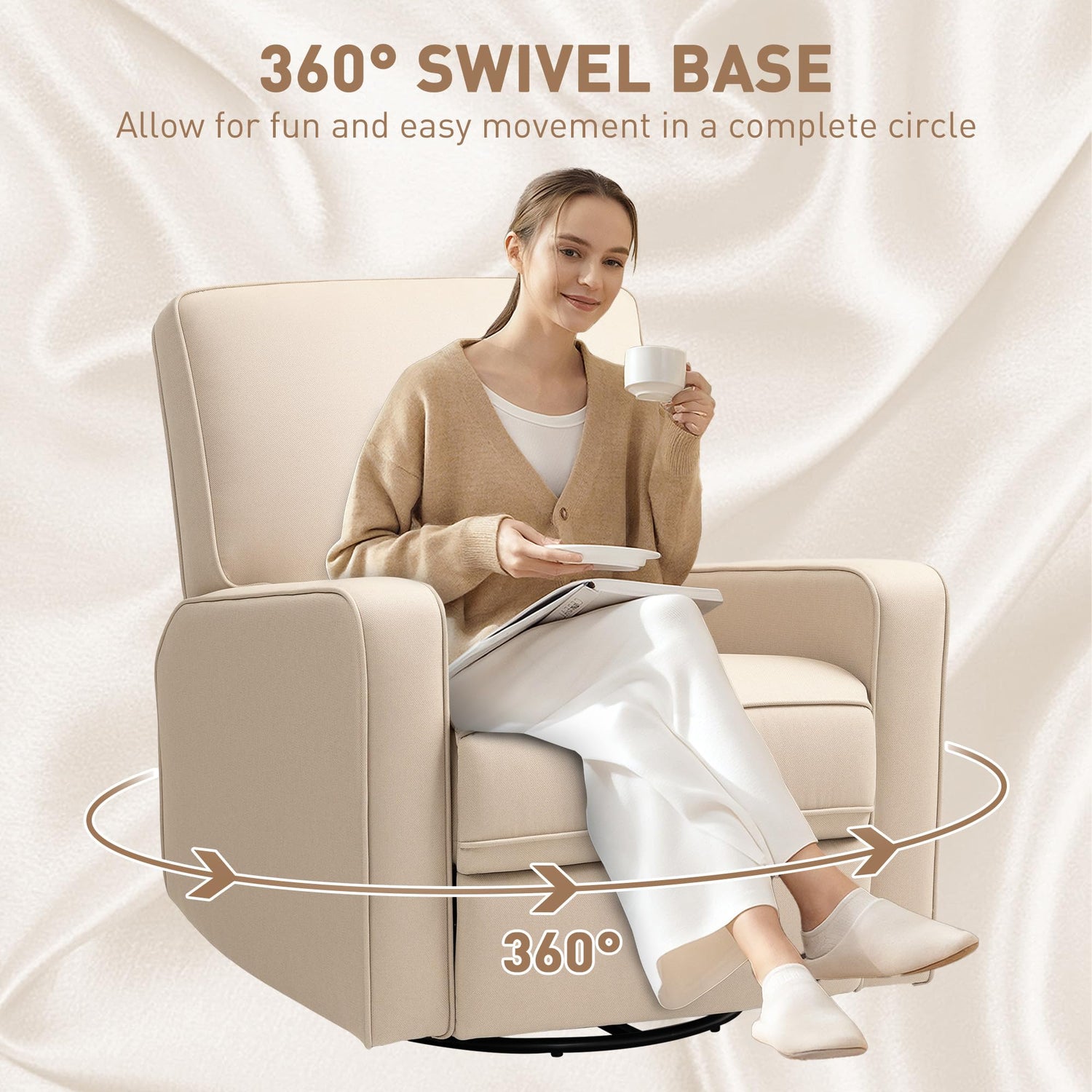 HOMCOM Manual Recliner Chair for Adults, Breathable Fabric Swivel Rocker Recliner with Thick Cushion and Footrest, Adjustable Single Sofa for Living Room, Beige