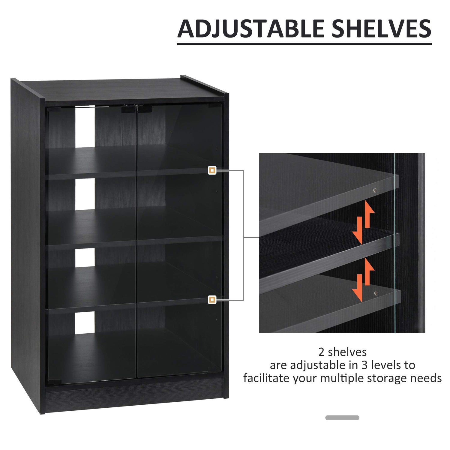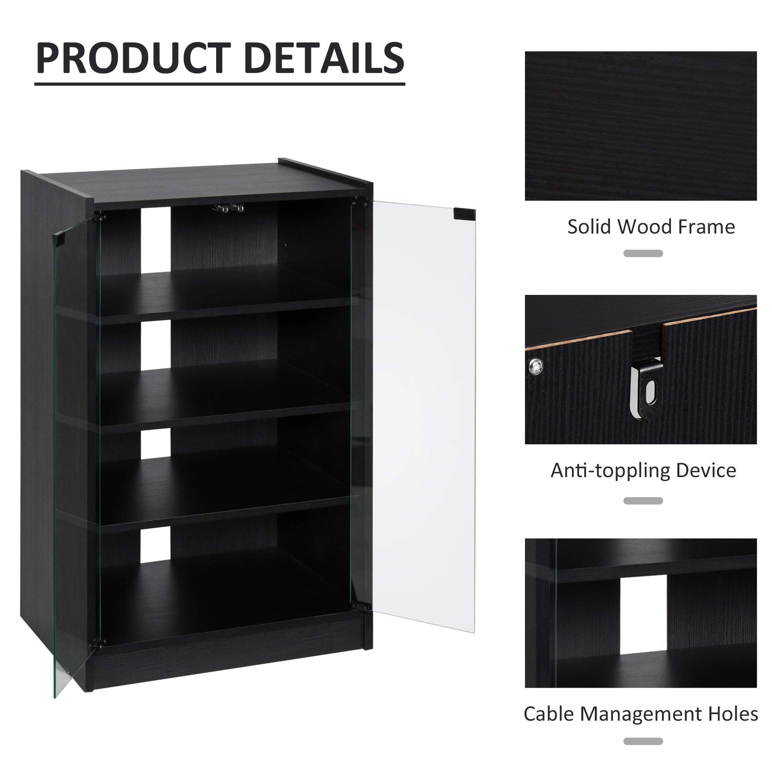 HOMCOM Media Cabinet, 4-Tier Stereo Cabinet, Modern Audio Video Media Stand with Adjustable Shelves, Tempered Glass Doors, and Cable Management, Distressed Black