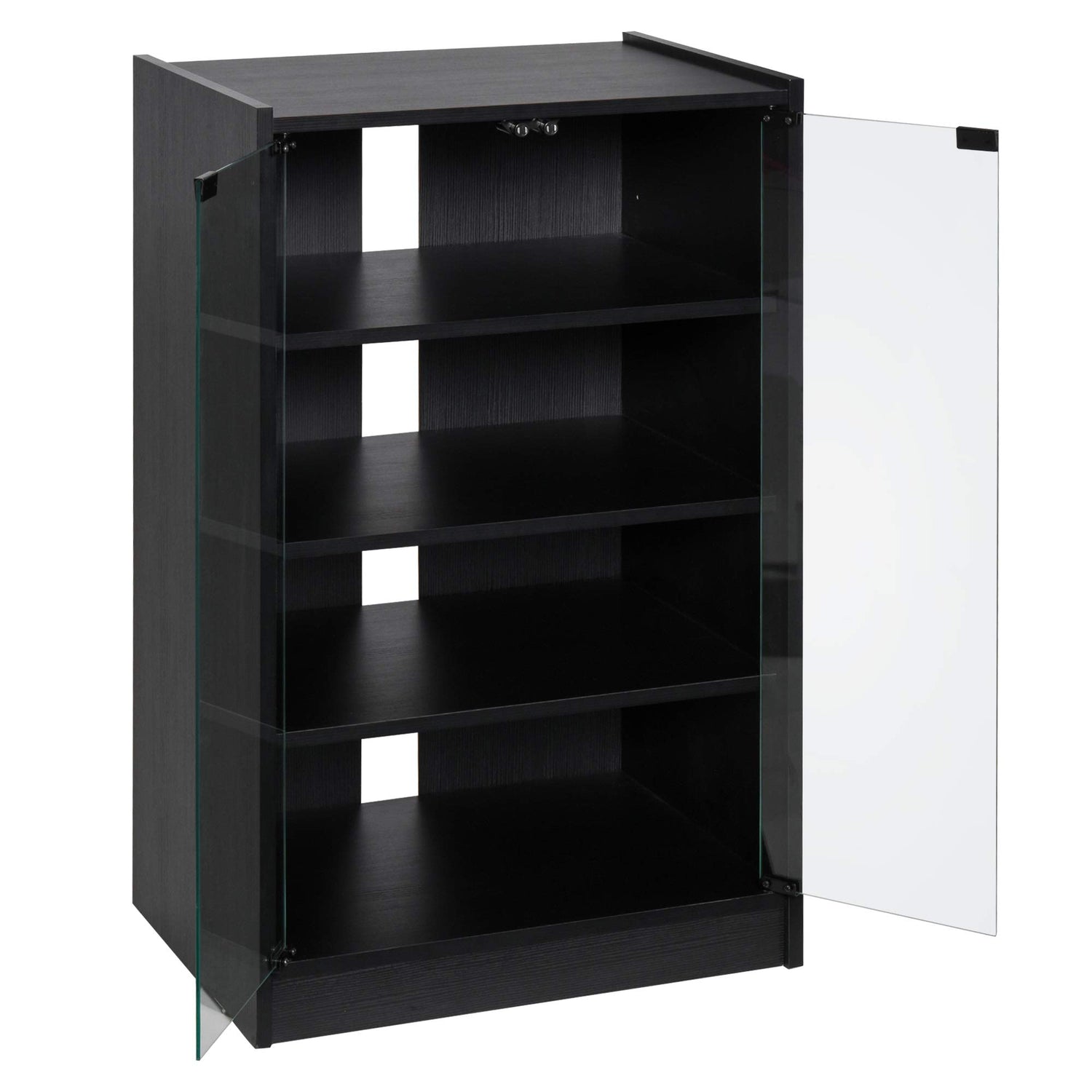 - Glass Door: Tempered glass doors with push-to open latch allows you to store the items you need easily while still being able to see inside for display. Any electronics inside the media stand will still easily receive signals through the glass.