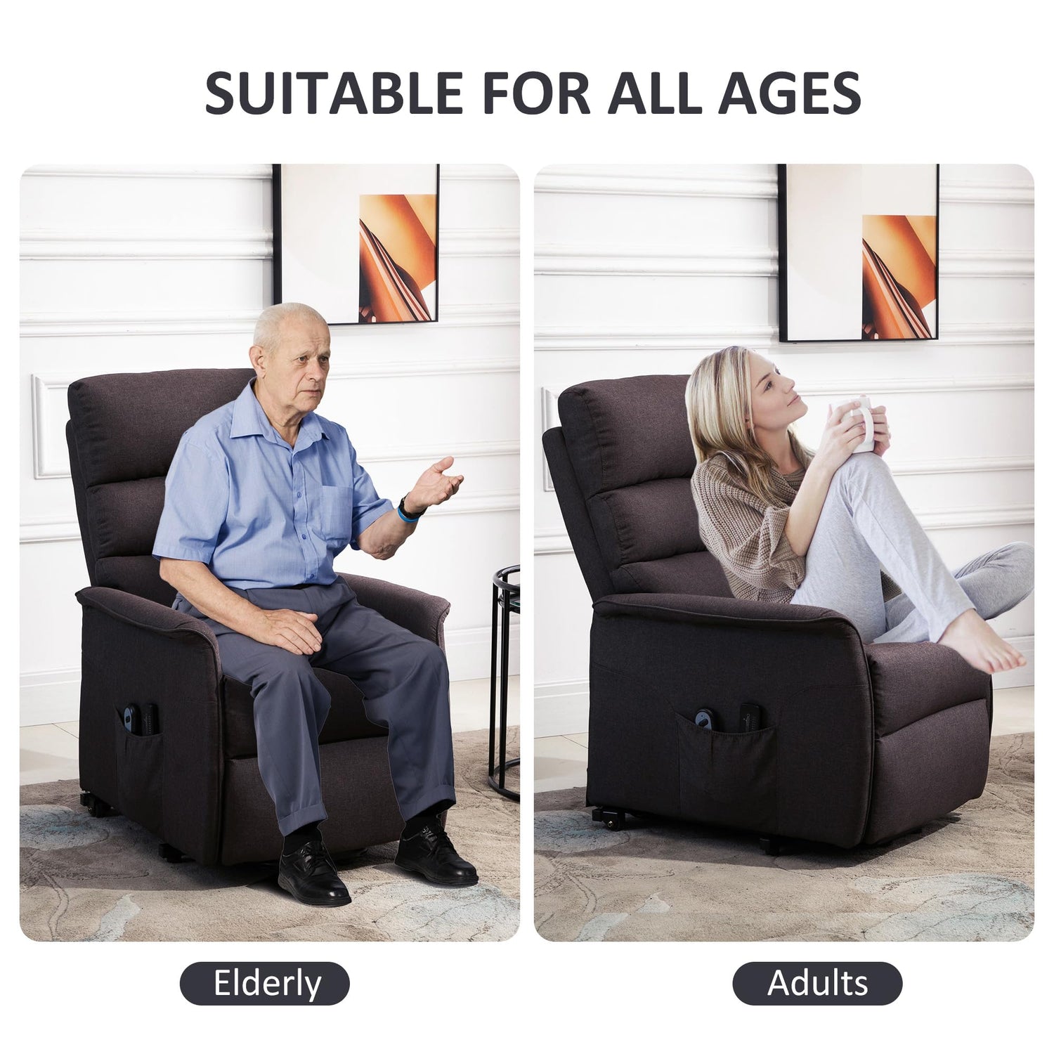 HOMCOM Power Lift Recliner Chair for Elderly, Easy Assembly, Fabric Lift Chair for Adults, Recliner Sofa with Remote Control, Side Pockets for Living Room, Brown