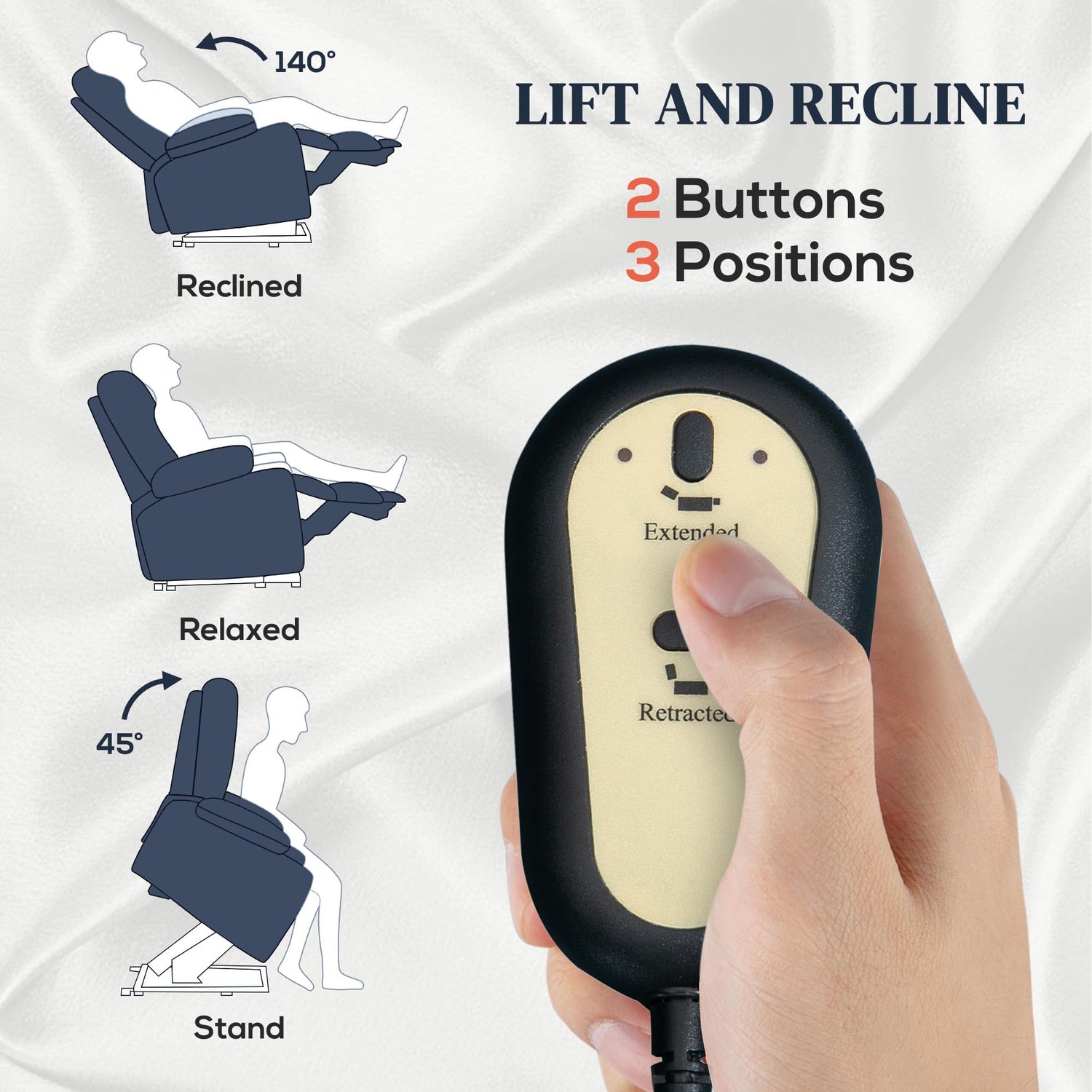 - Effortless Lift and Stepless Recline: With a gentle yet powerful mechanism, this power lift chair elevates you smoothly to a near-standing position, as well as a stepless reclining angle up to 150°—tailored relaxation at your fingertips with remote