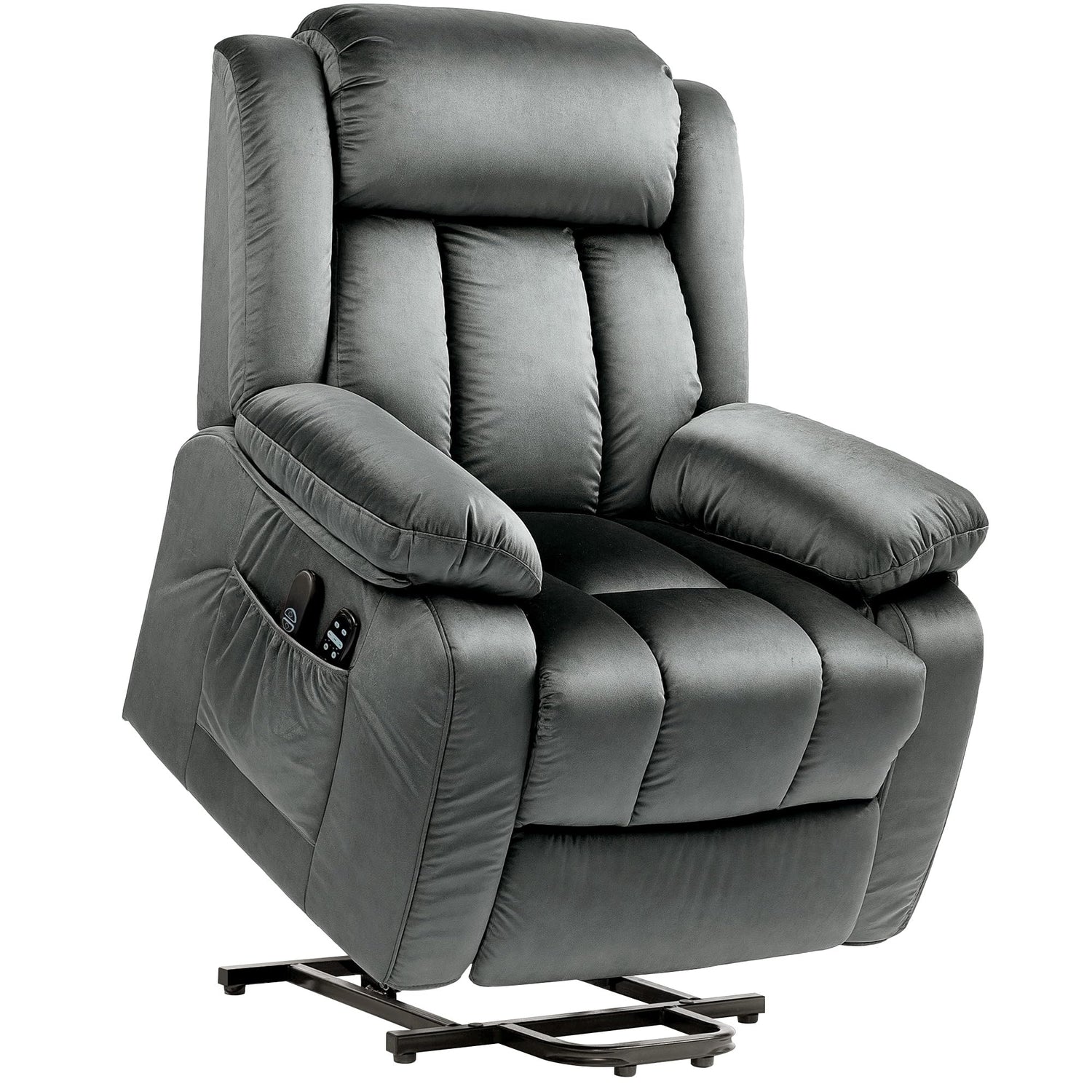 Details: Experience the comfort of the HOMCOM power lift recliner, designed to effortlessly hoist you from sitting to standing. Sink into relaxation with a 150° recline and built-in footrest while an 8-point massage system and lumbar heat soothe away daily stress. Cozy velvet-feel upholstery and a pocket spring system ensure lasting comfort and support in this electric recliner chair.
