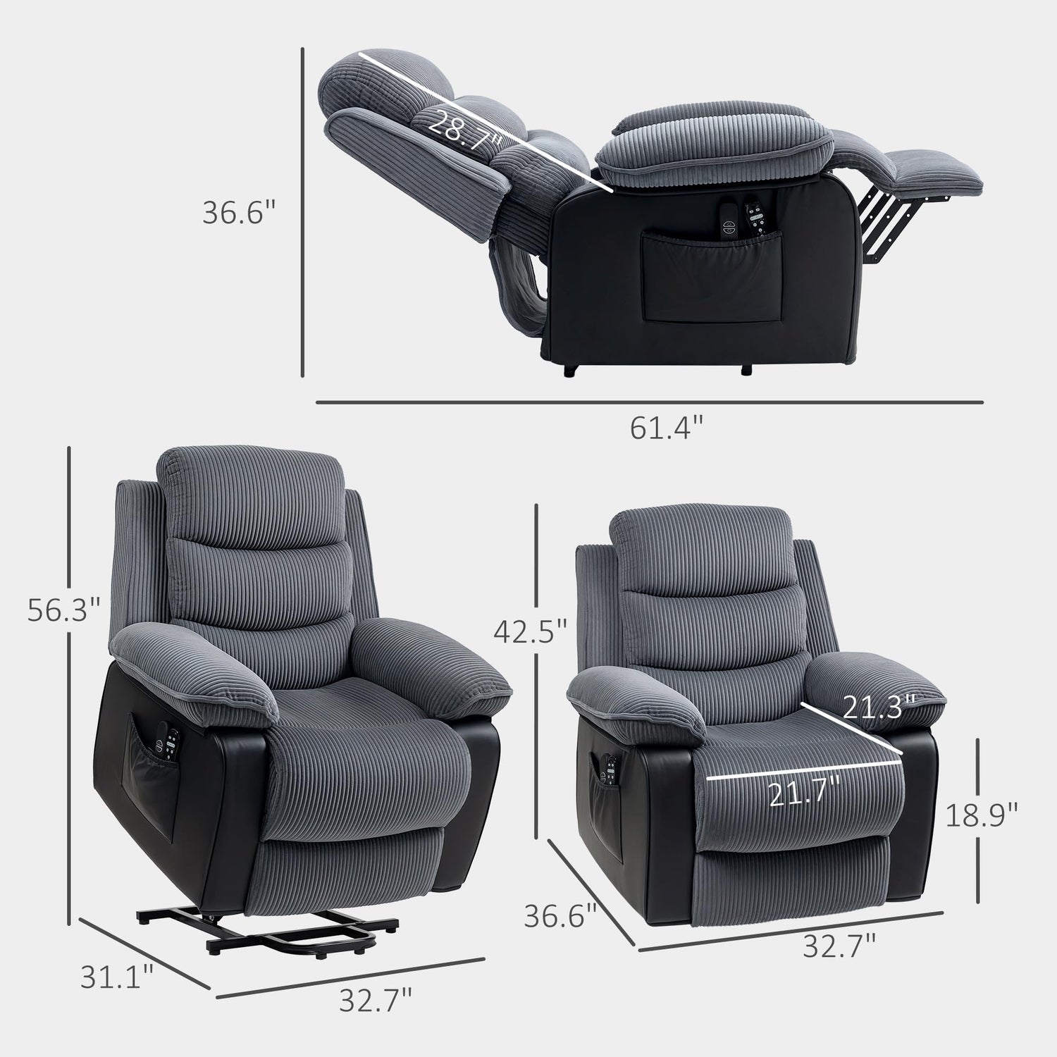 HOMCOM Power Lift Recliner Chair for Elderly with Massage and Heat, Electric Lift Chair, Patchwork Design Massage Chair Recliner with Remote Controllers, USB Port and Side Pockets, Gray