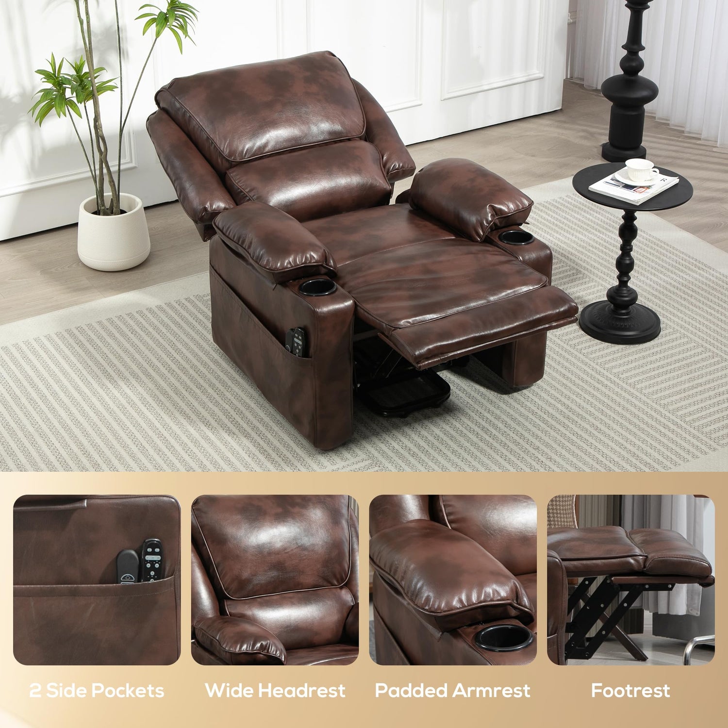 - Luxurious Comfort: Sink into comfort with overstuffed design and pocket spring padding, featuring a 9.8" thick dolly cotton back cushion and a 22" wide seat. Wrapped in easy-to-clean PU leather, this massage chair recliner blends luxury and practicality.