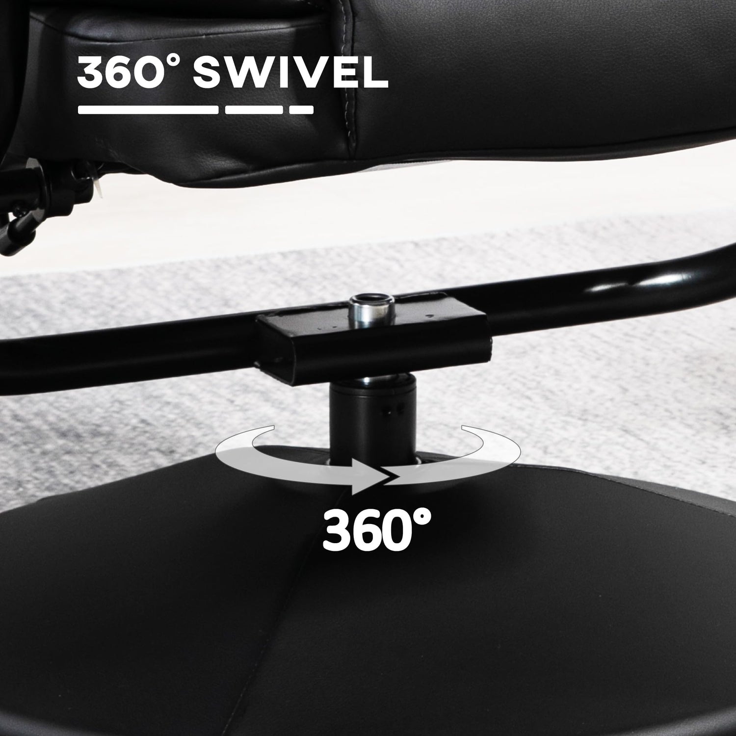 HOMCOM Recliner Chair with Ottoman Footrest, 360° Swivel Reclining Chair, Faux Leather Living Room Chair with Adjustable Backrest and Wrapped Base, Black